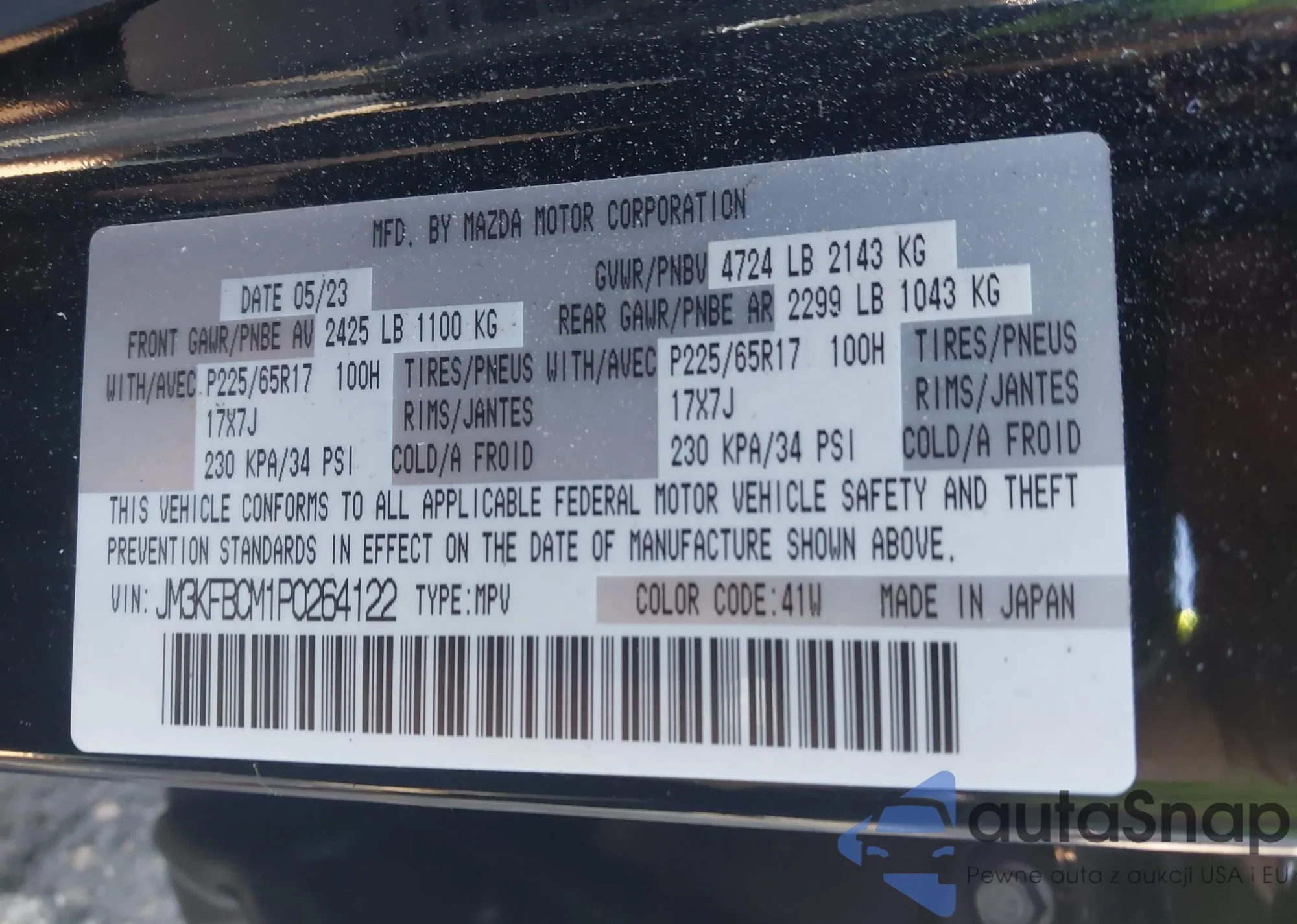 LOT: 42331280 VIN: JM3KFBCM1P0264122