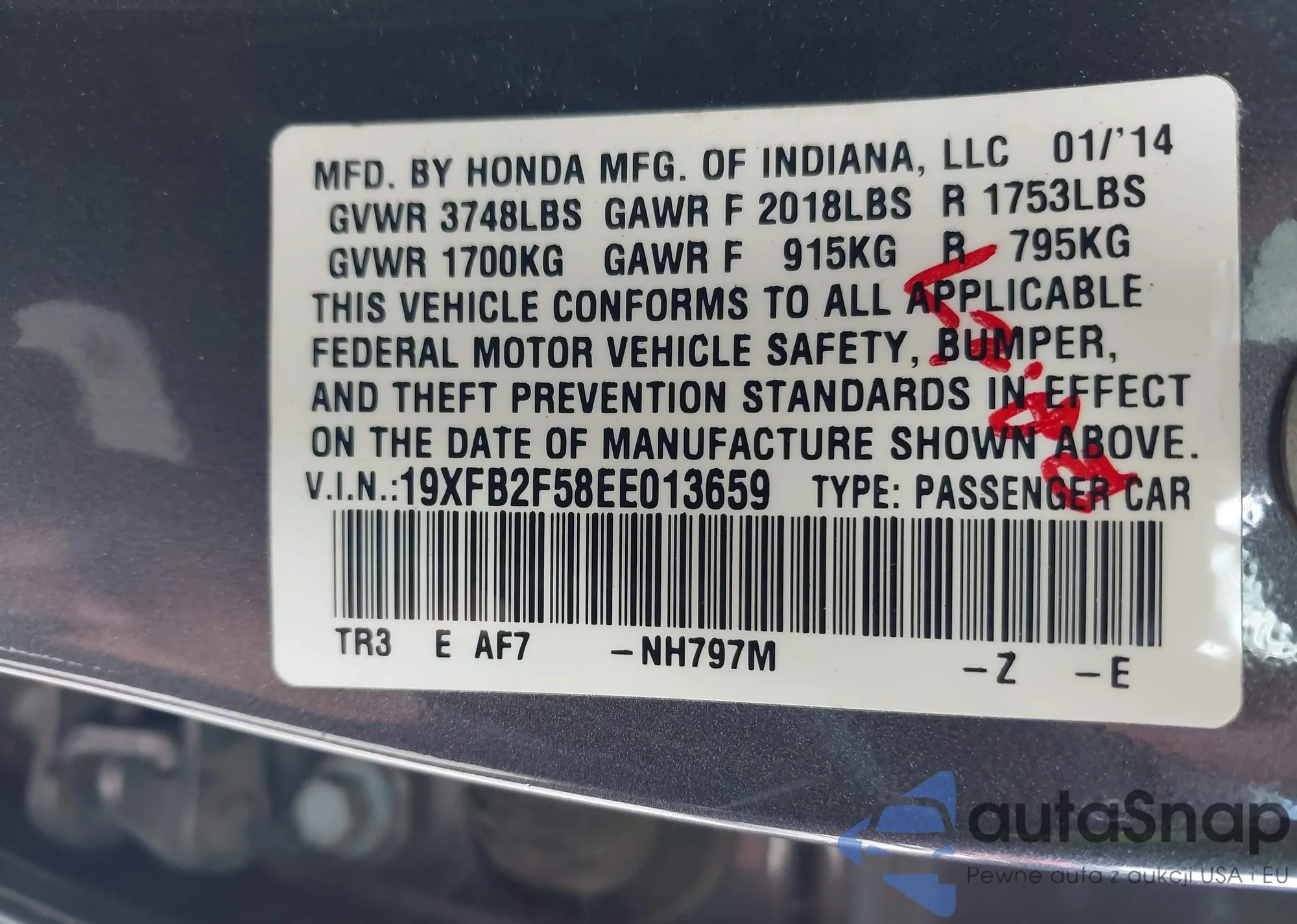• VIN 19XFB2F58EE013659