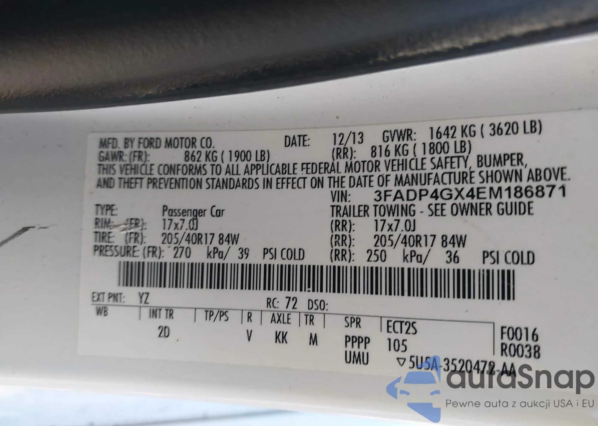 • VIN 3FADP4GX4EM186871