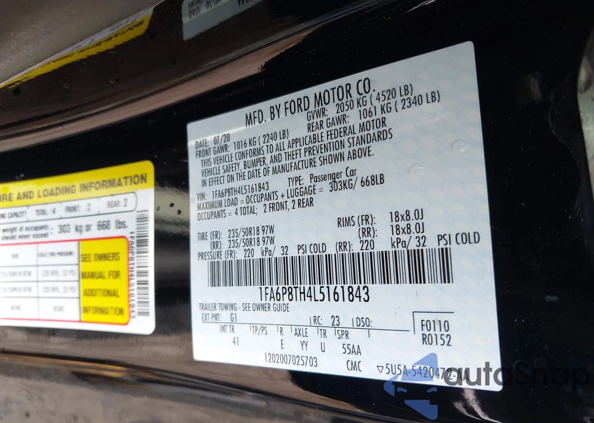 • VIN 1FA6P8TH4L5161843