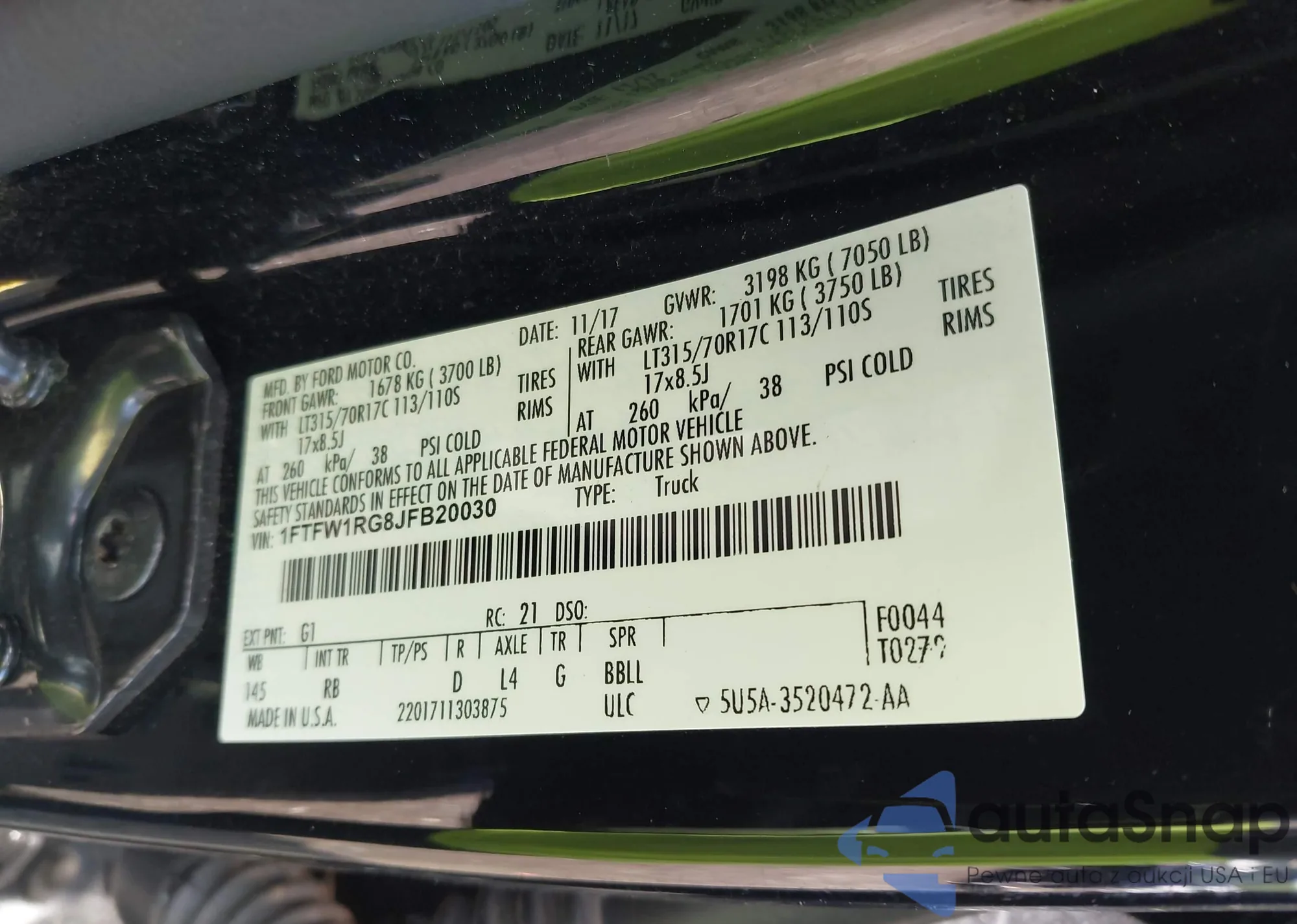 • VIN 1FTFW1RG8JFB20030