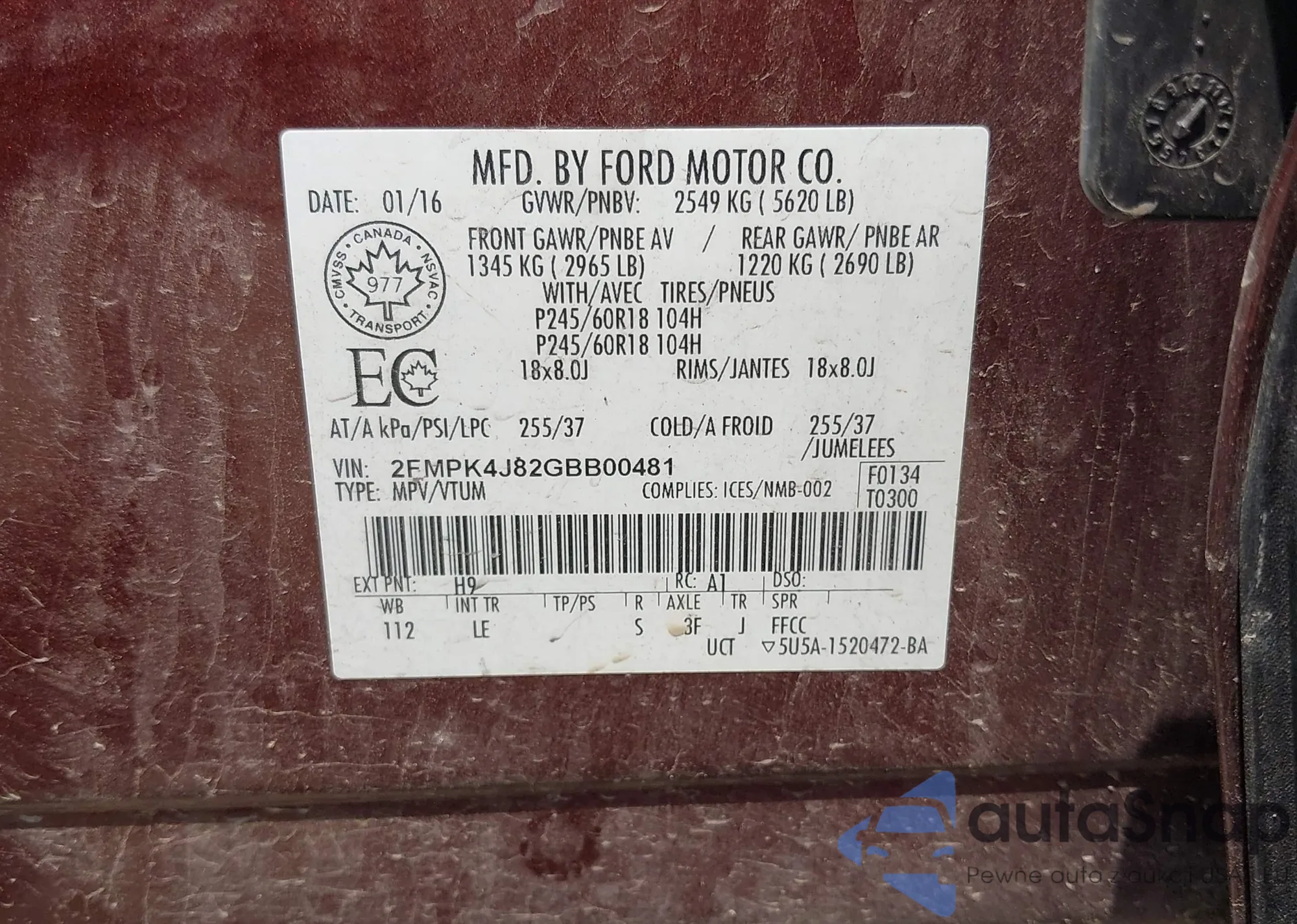 • VIN 2FMPK4J82GBB00481
