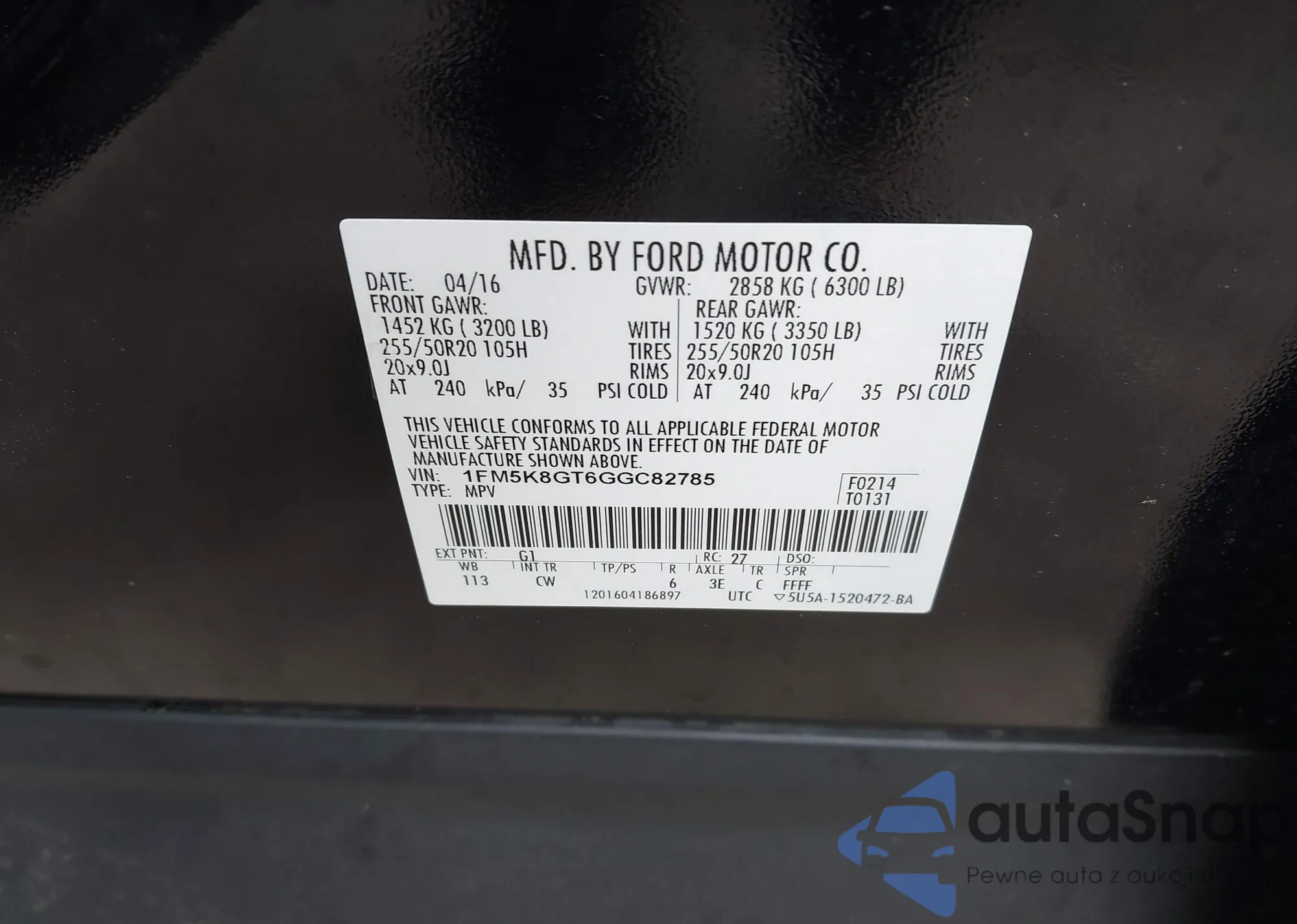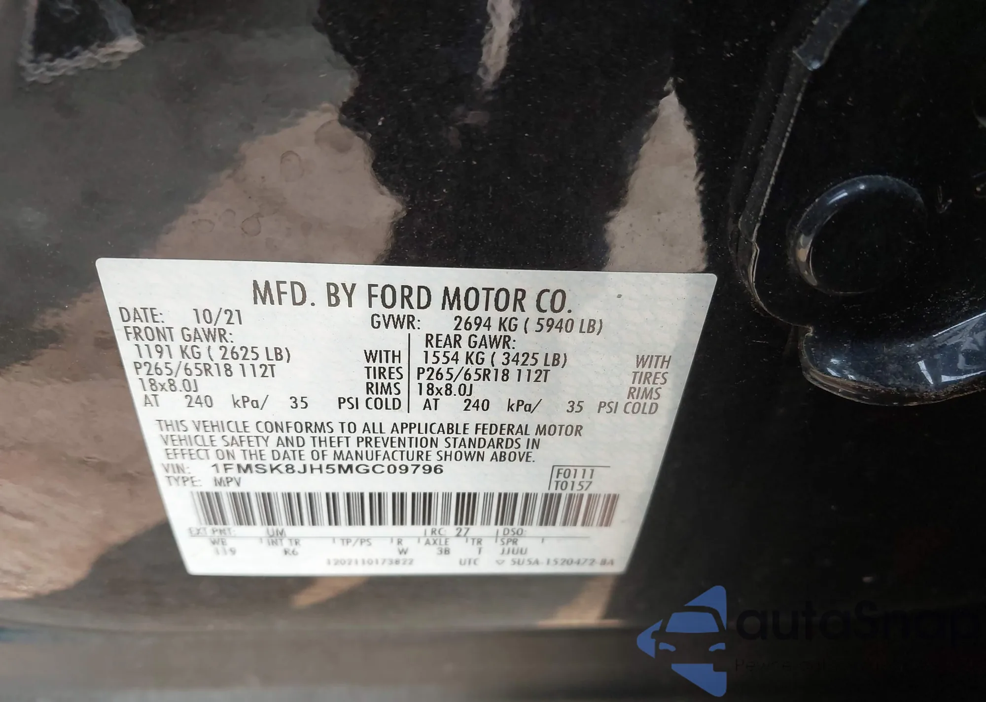 LOT: 42343432 VIN: 1FMSK8JH5MGC09796