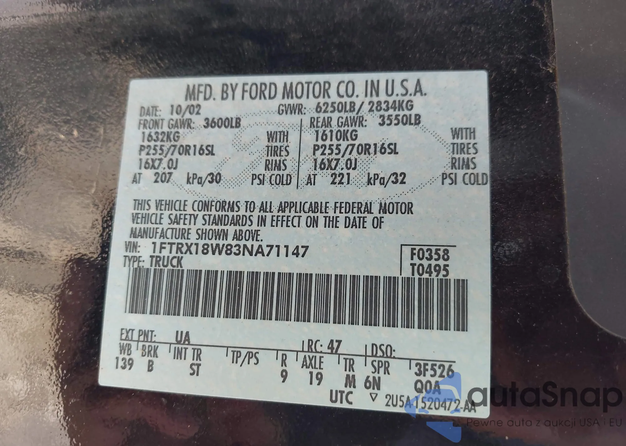 • VIN 1FTRX18W83NA71147