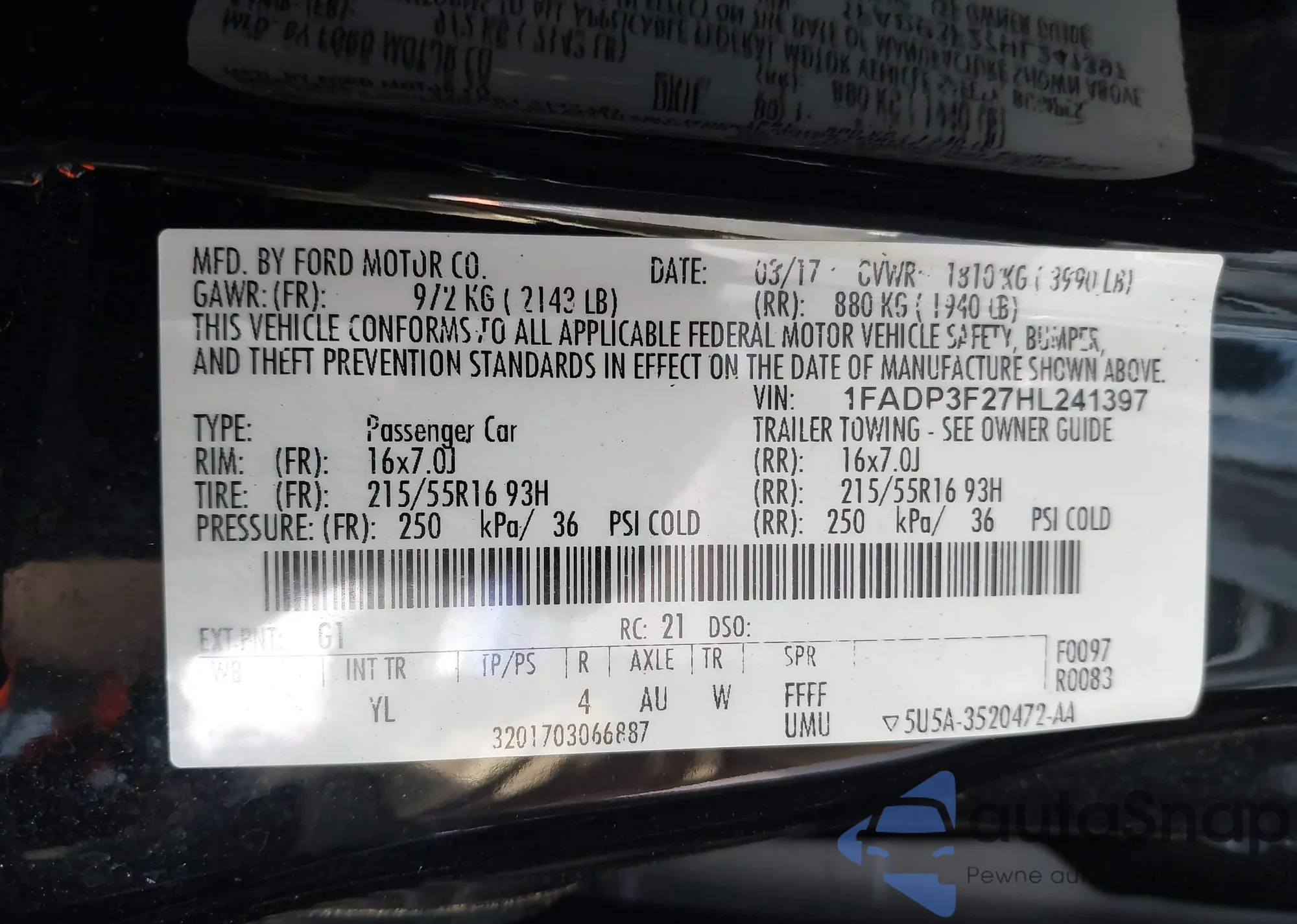 • VIN 1FADP3F27HL241397