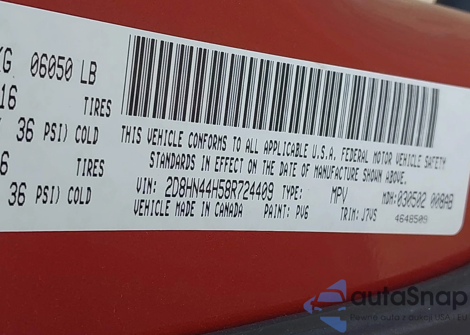 LOT: 42434384 VIN: 1D8HB58D35F574910
