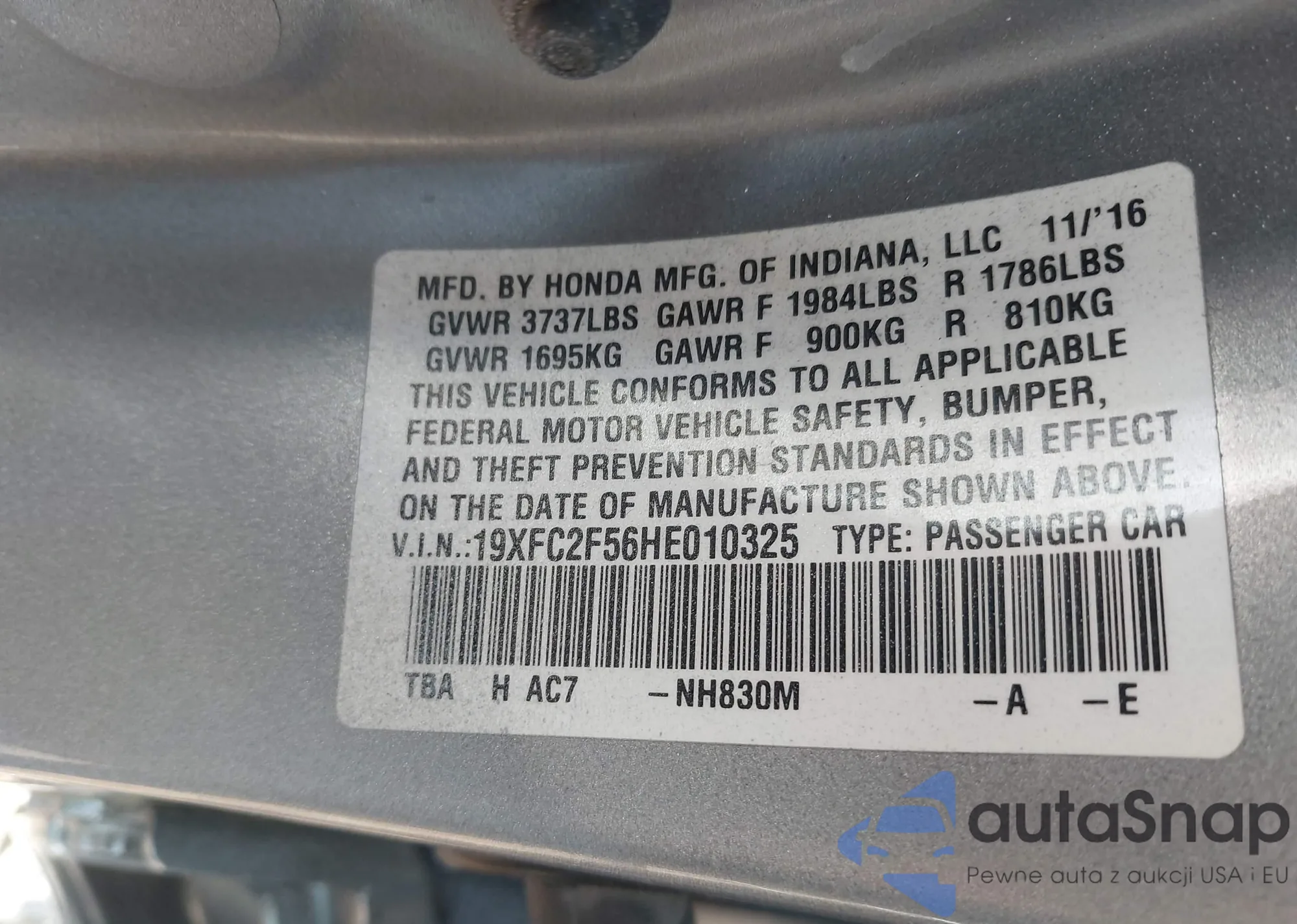 • VIN 2HGFC2F81LH555213