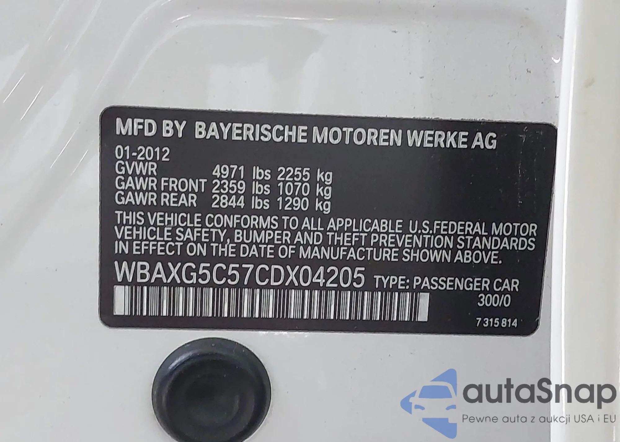 • VIN WBAXG5C57CDX04205