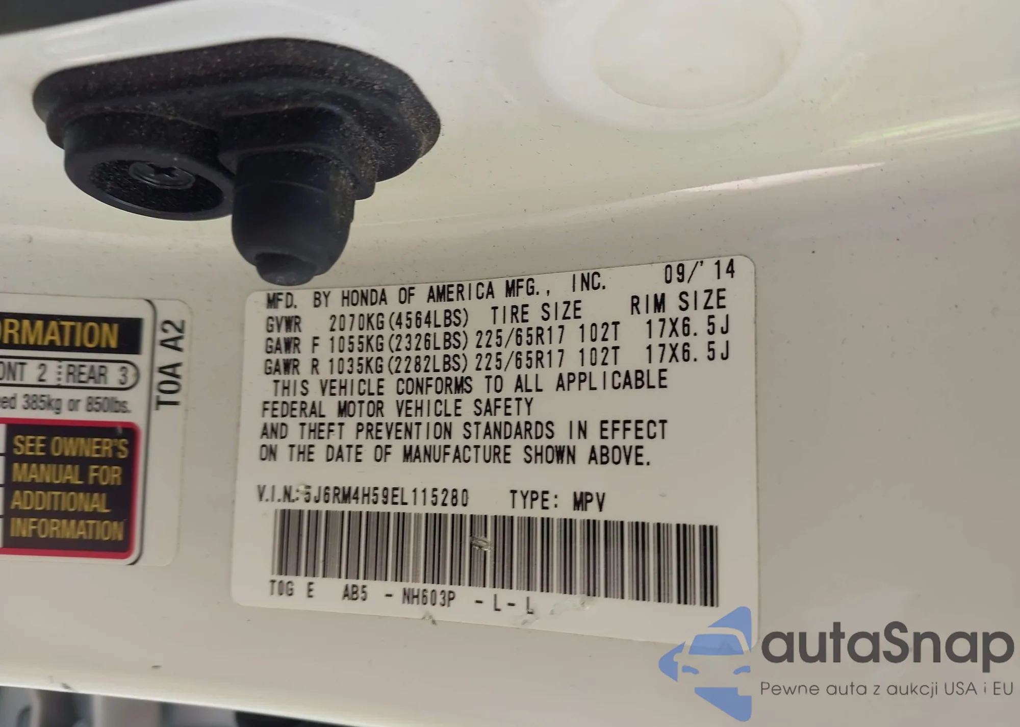 • VIN 5J6RM4H59EL115280