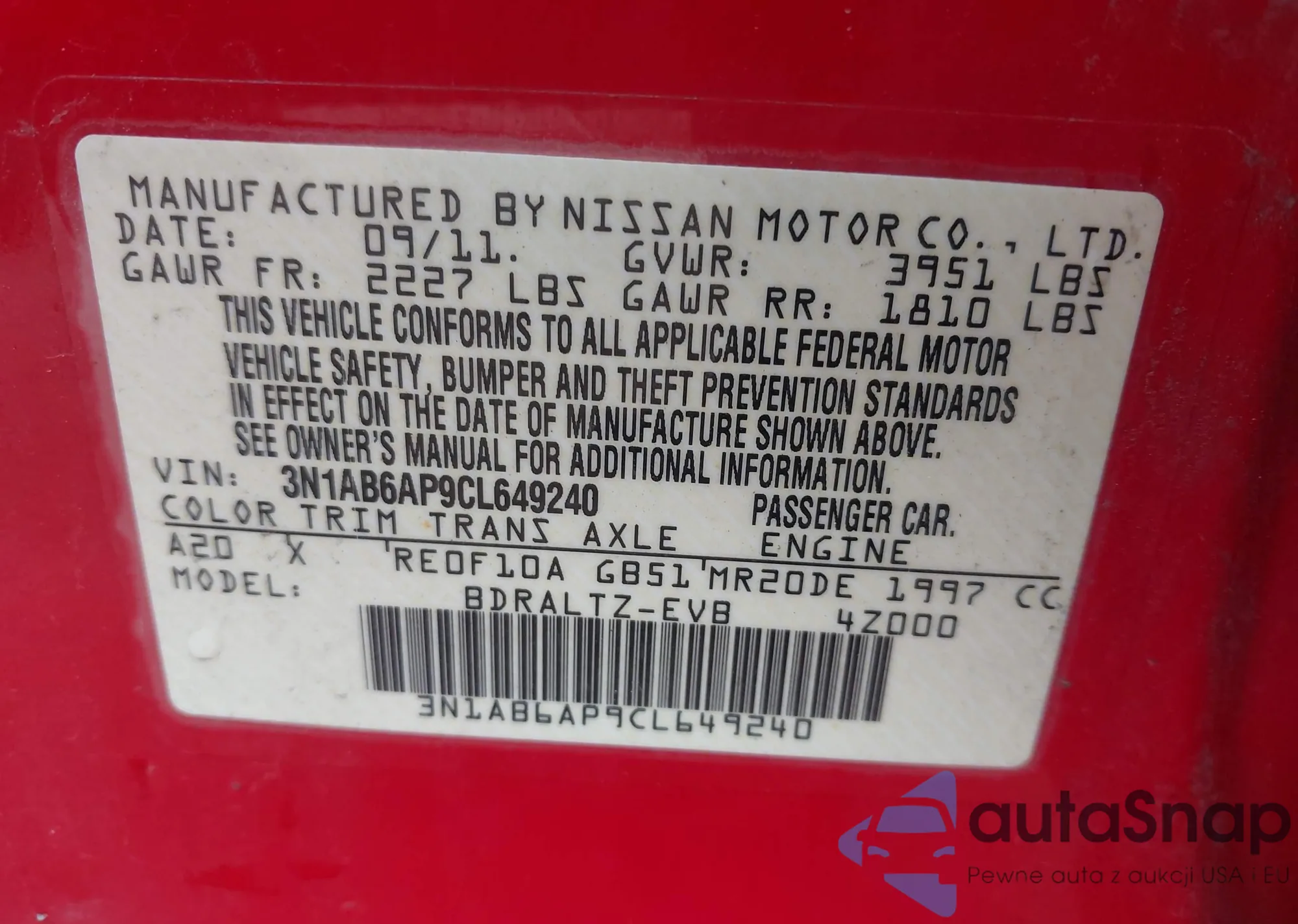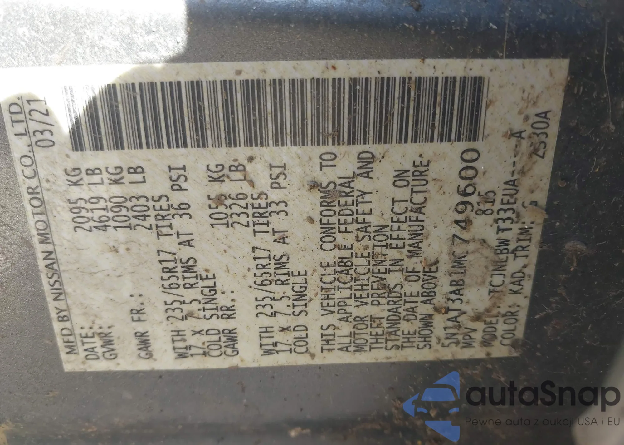 • VIN 5N1AT3AB1MC749600