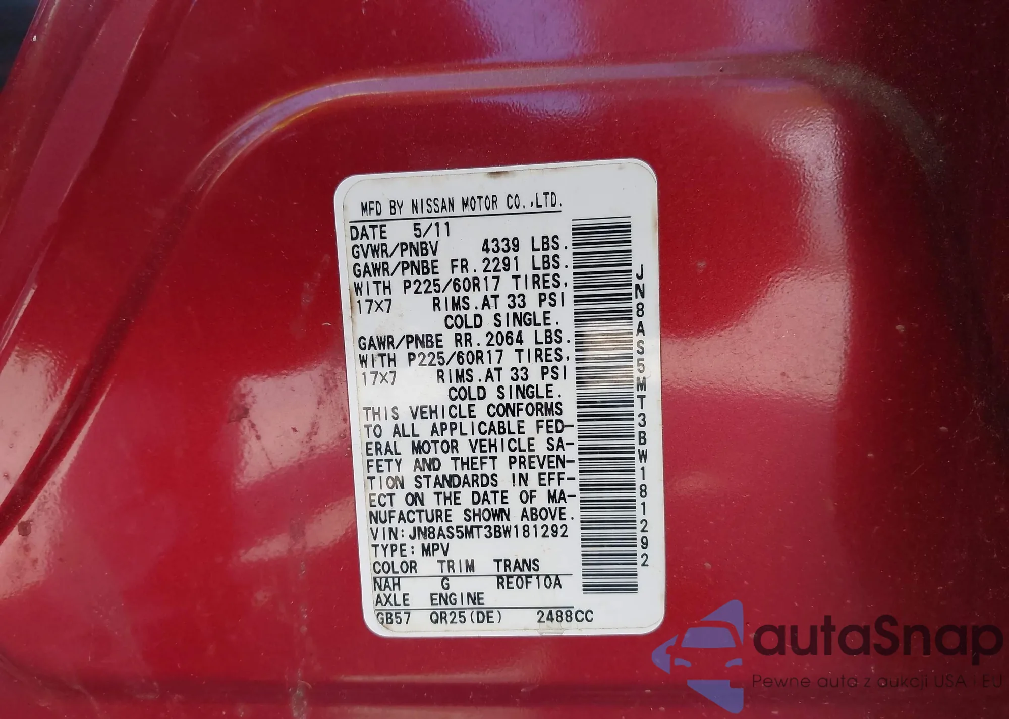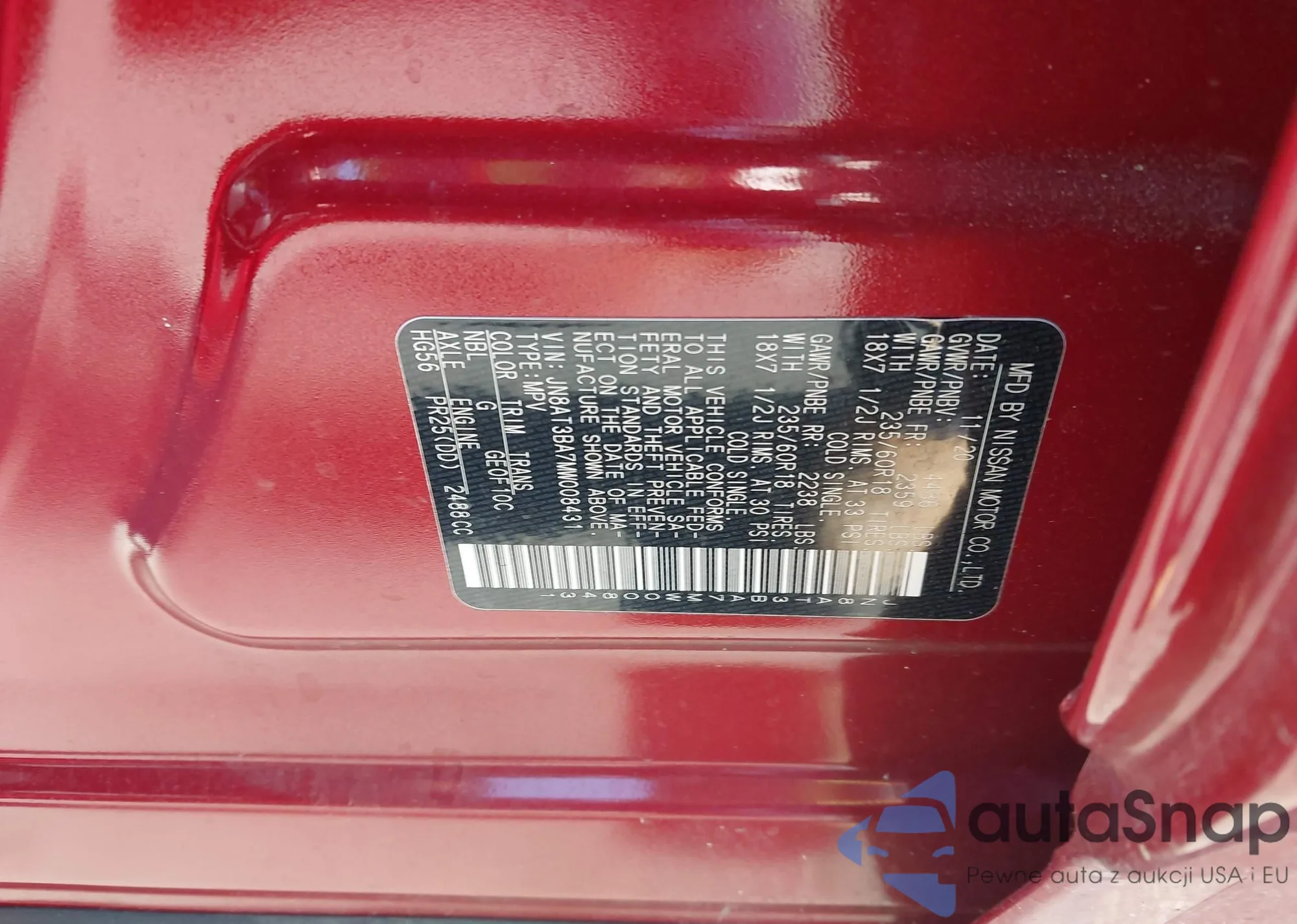 LOT: 42108768 VIN: JN8AT3BA7MW008431