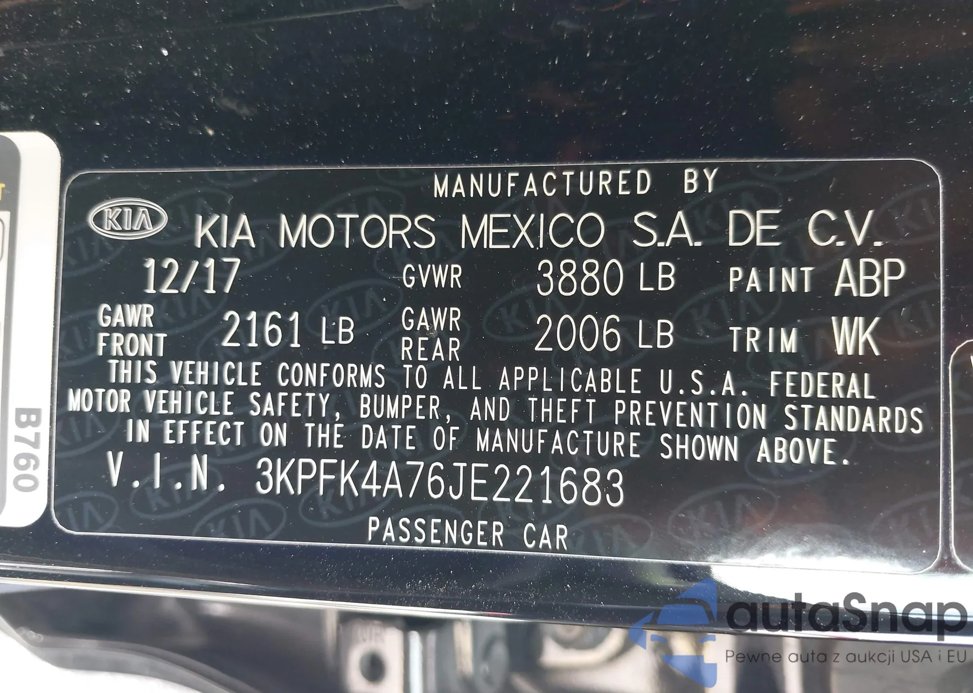 LOT: 42116855 VIN: 3KPFK4A76JE221683