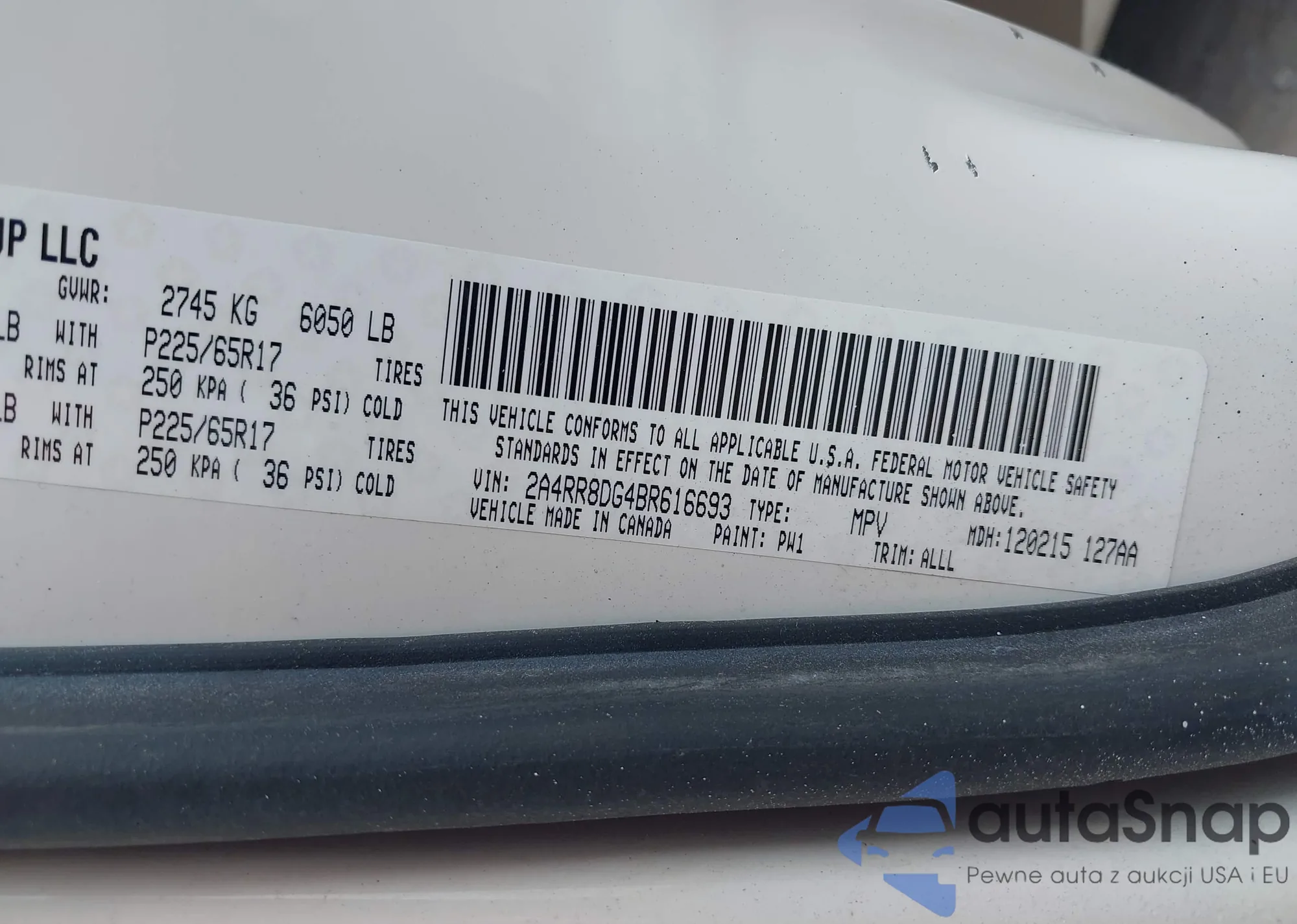 • VIN 2A4RR8DG4BR616693