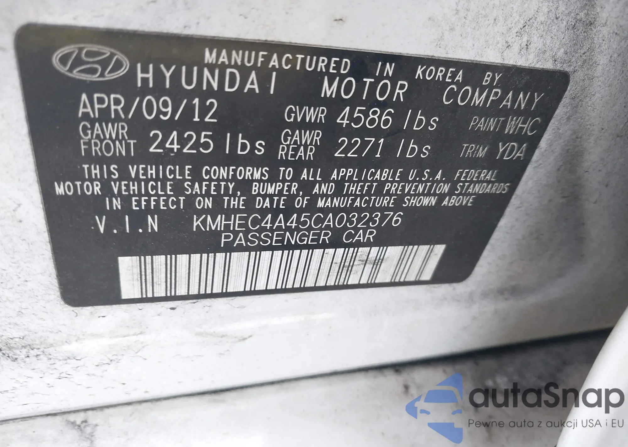LOT: 42119069 VIN: KM8R7DGE5RU806672