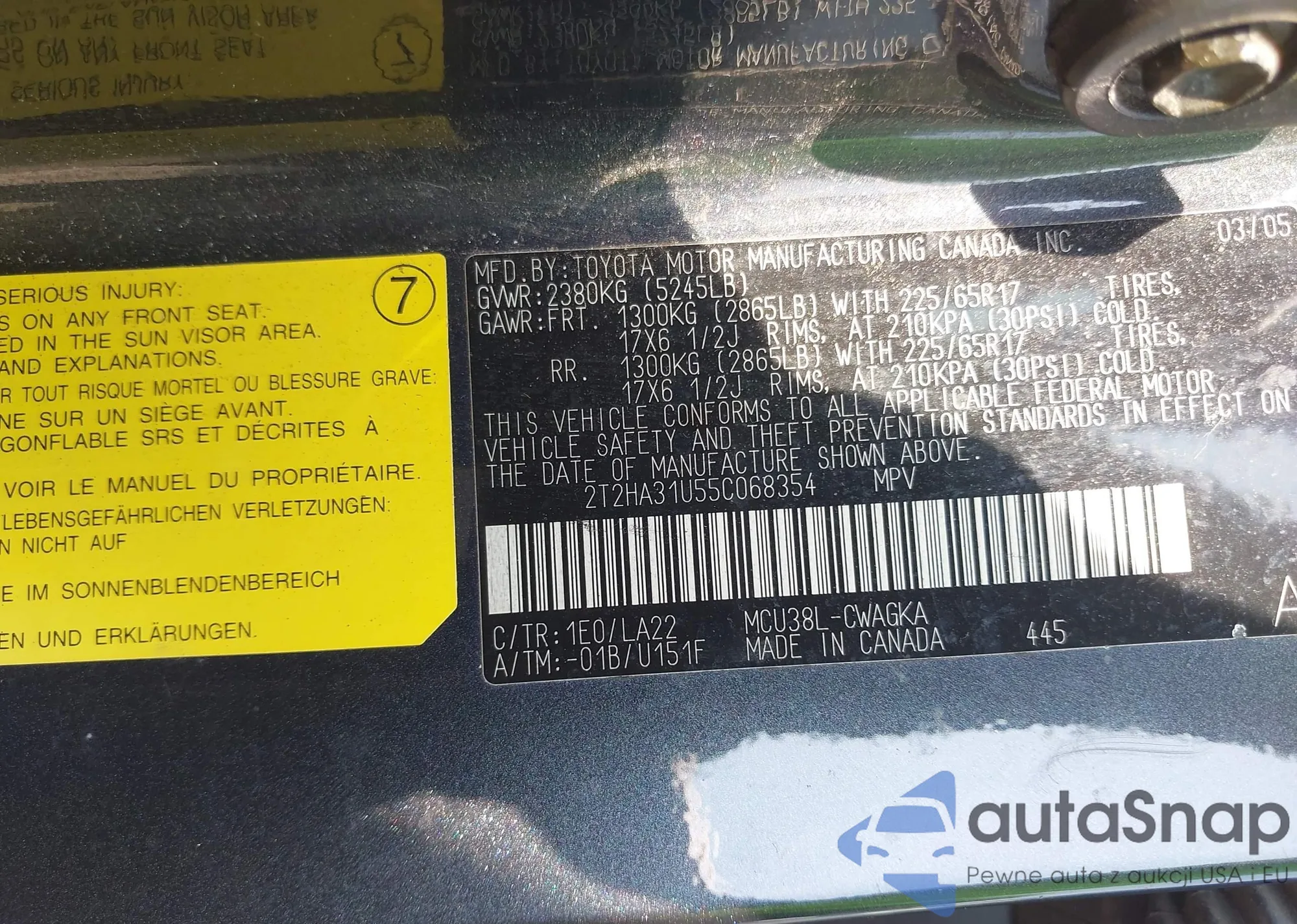 • VIN 2T2HA31U55C068354