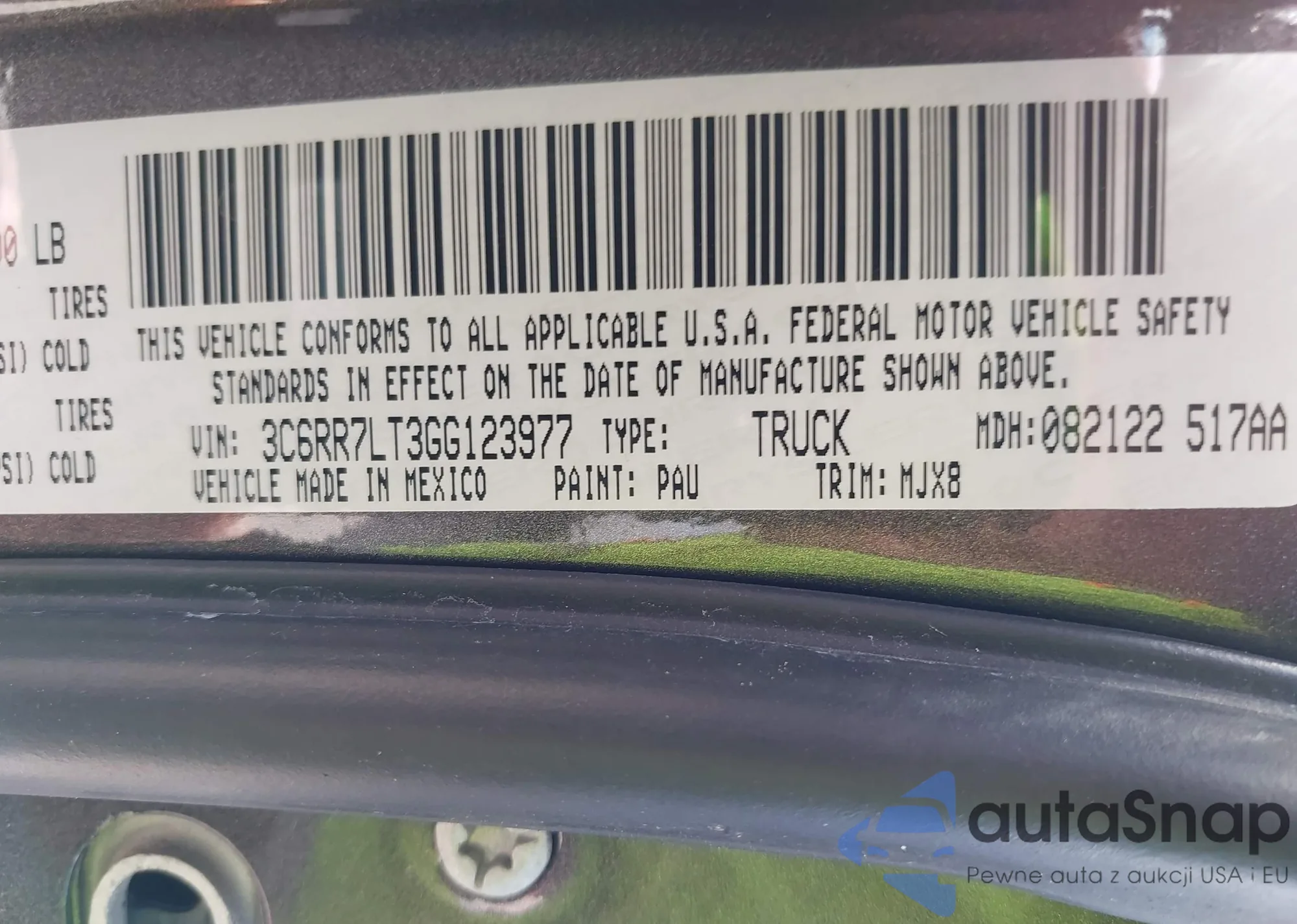 • VIN 3C6RR7LT3GG123977