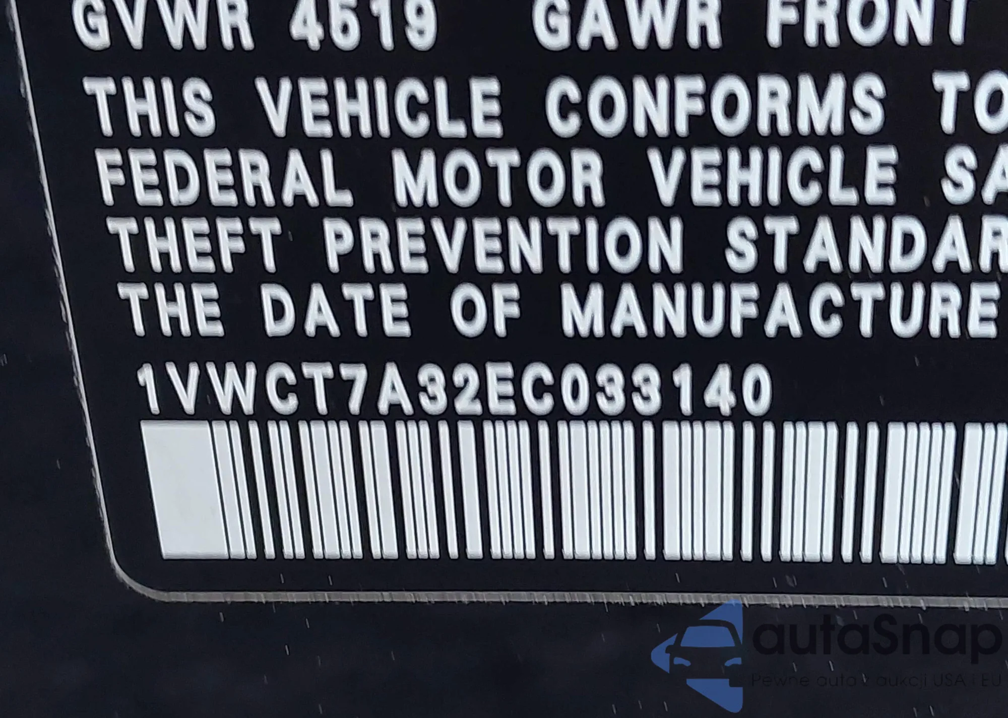 LOT: 42521735 VIN: 1VWCT7A32EC033140