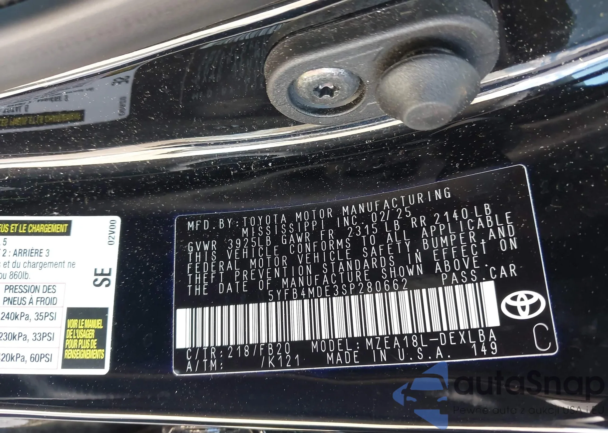 • VIN 5YFB4MDE3SP280662