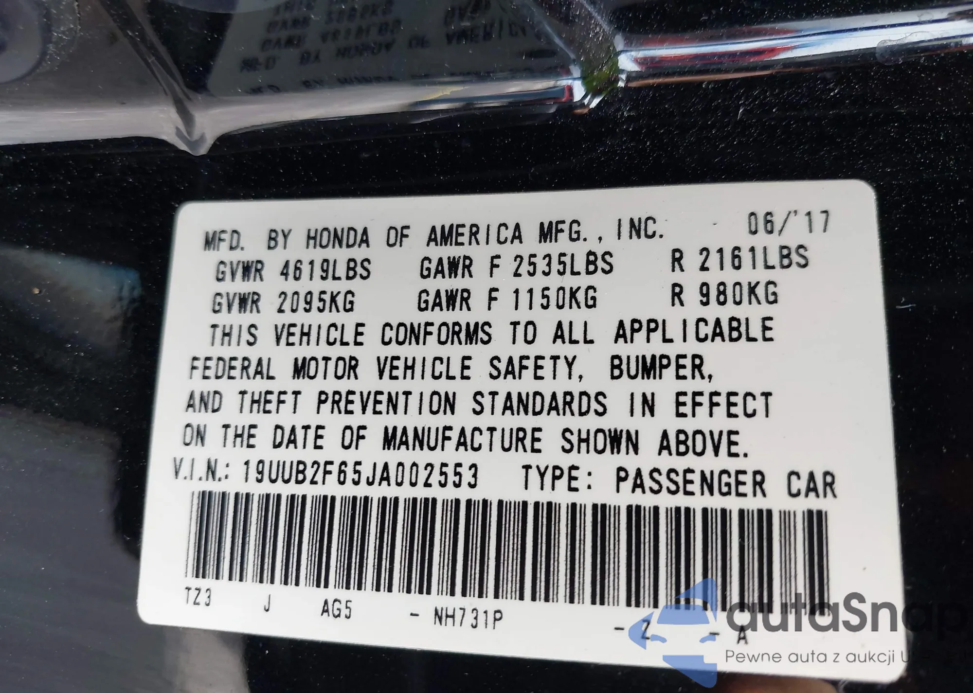 LOT: 42219832 VIN: 1HGCP2F63CA085755