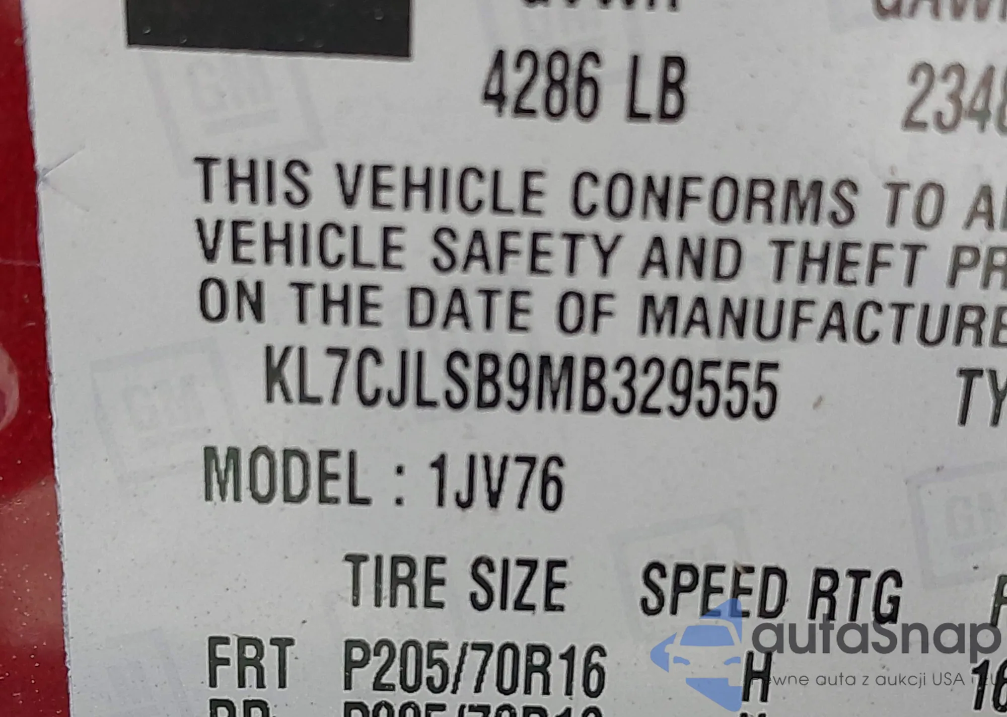 • VIN KL7CJLSB9MB329555