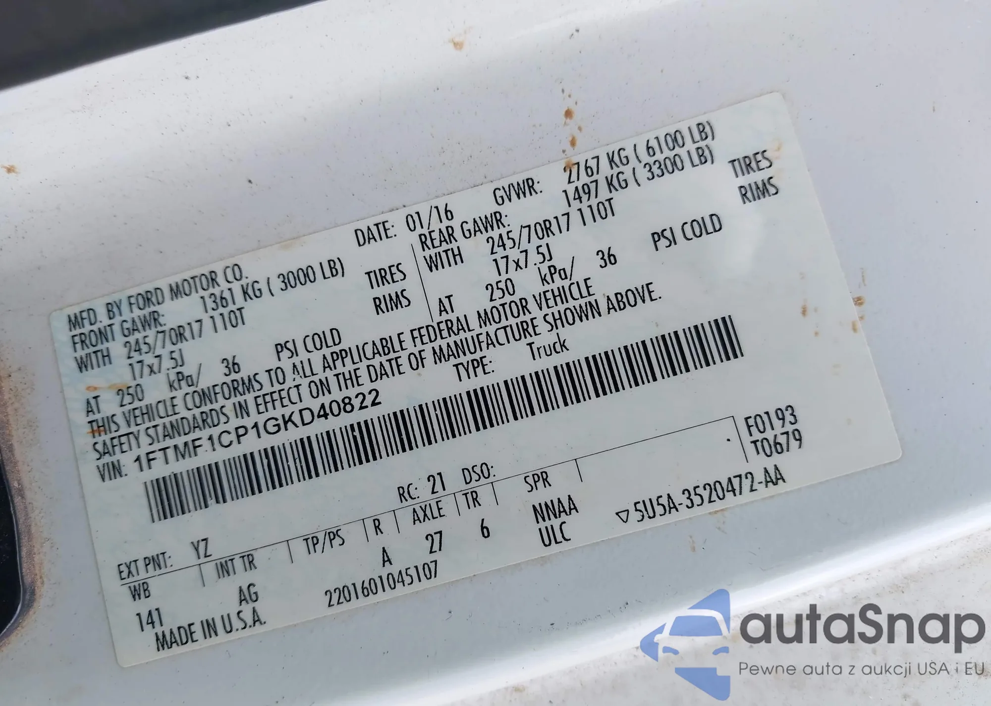 LOT: 42500934 VIN: 1FTMF1CP1GKD40822