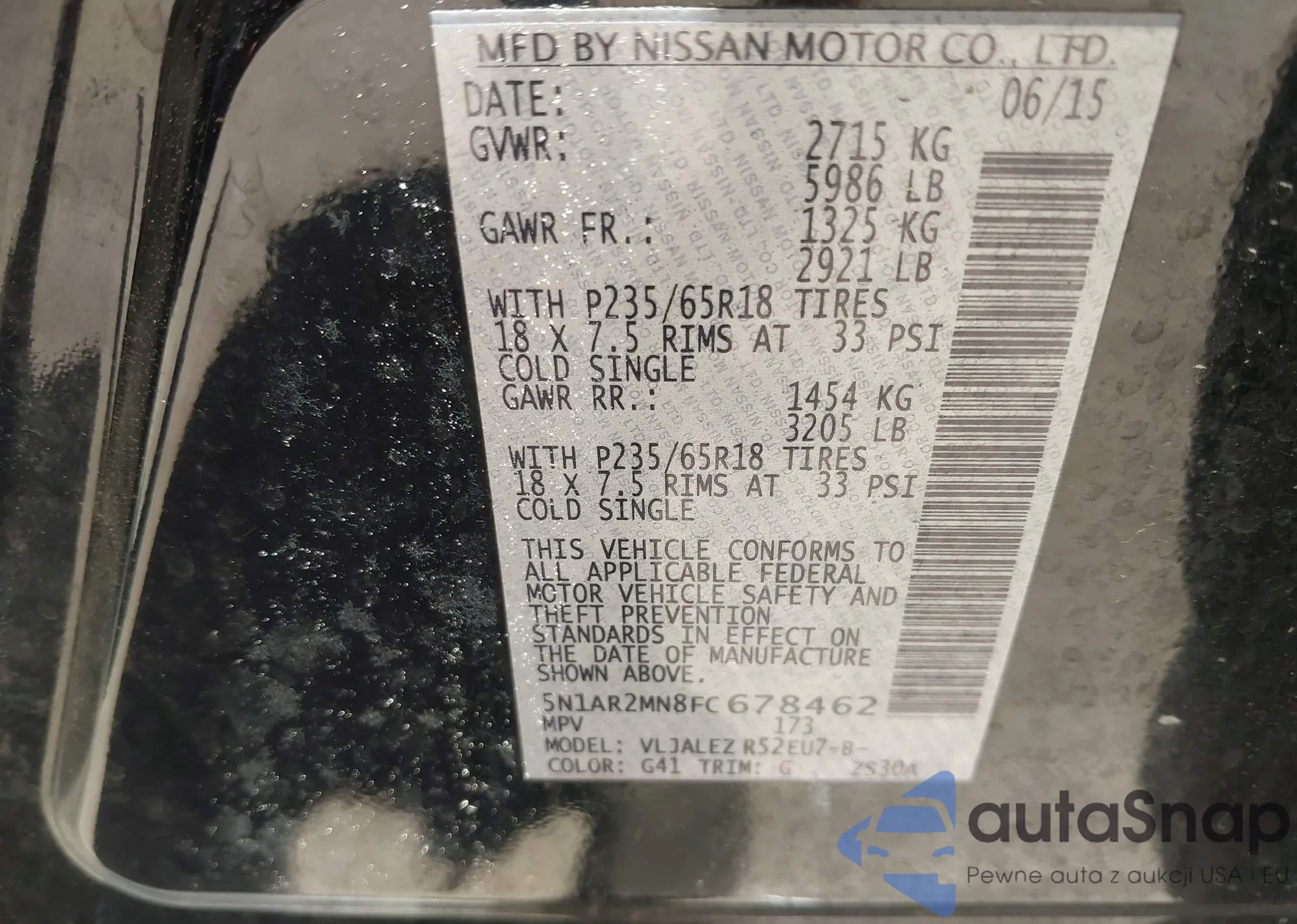 LOT: 42531191 VIN: 5N1AR2MN8FC678462