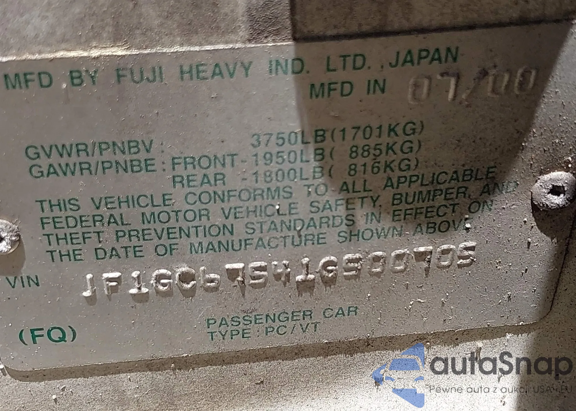 • VIN JF1GC67541G500705