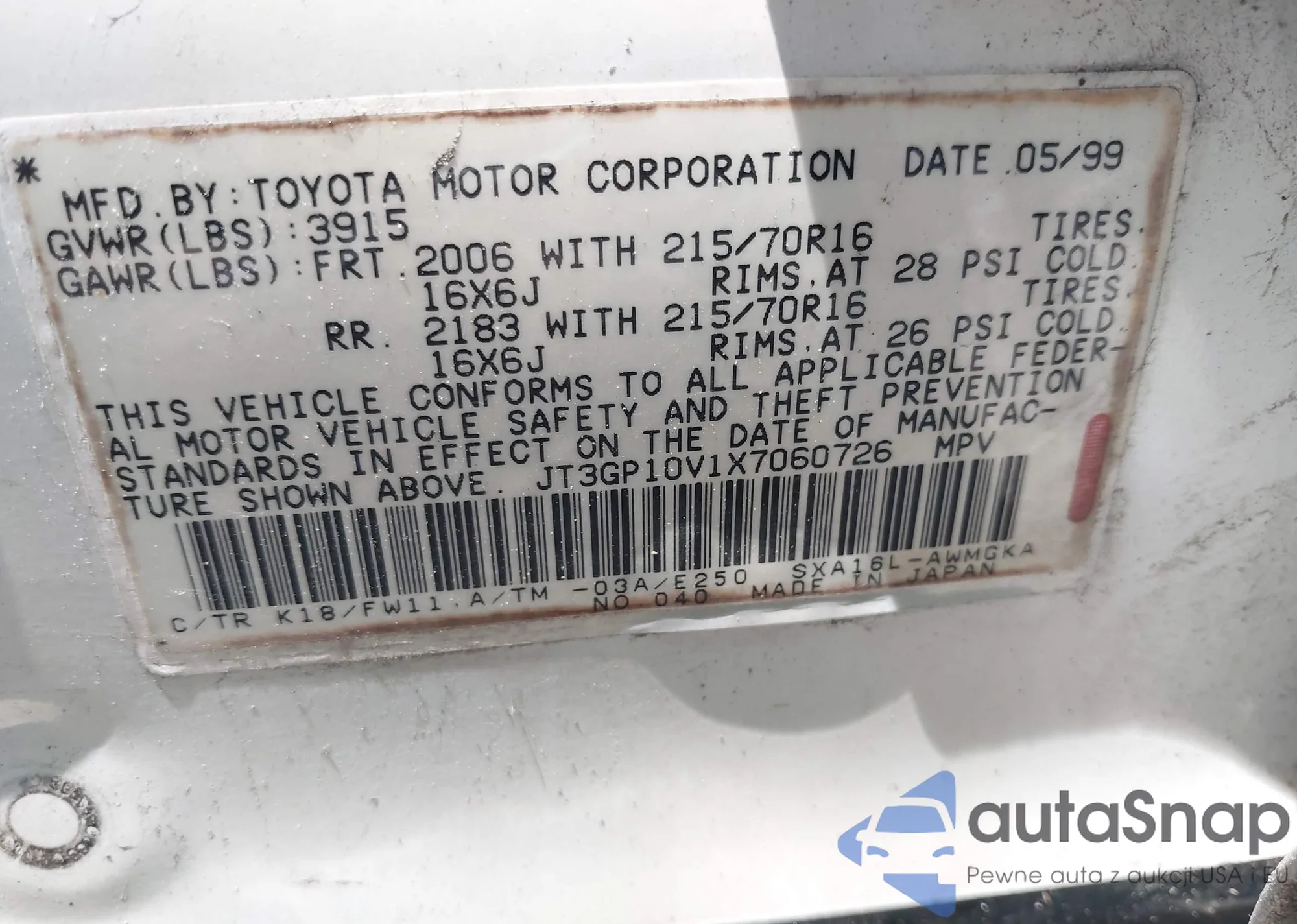 • VIN JT3GP10V1X7060726