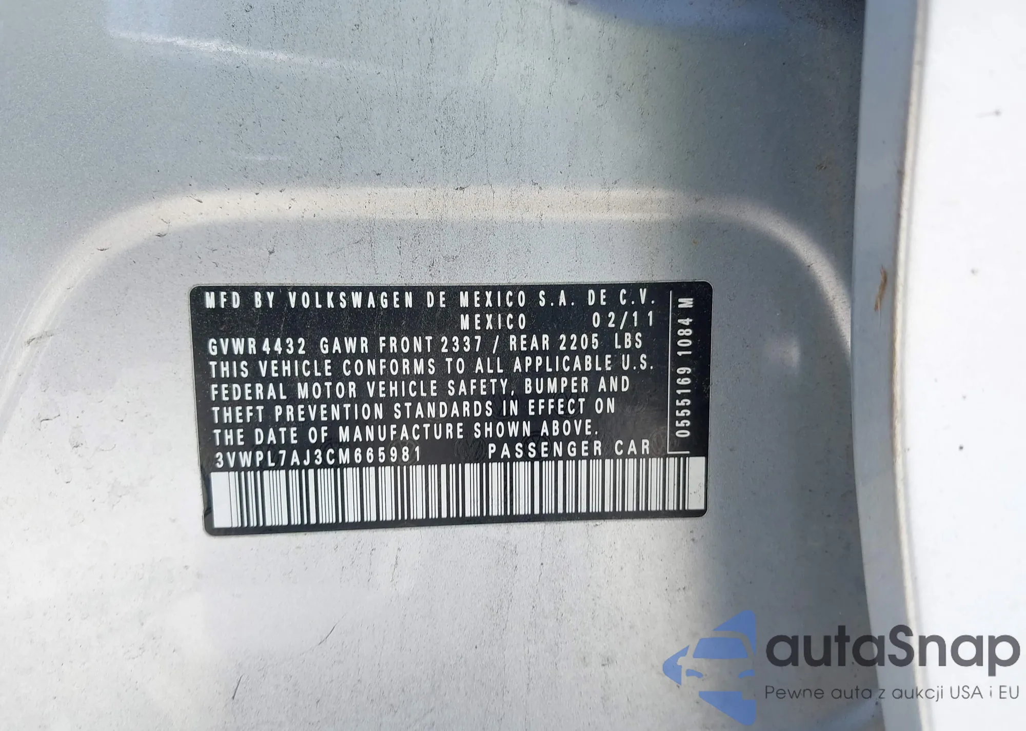 • VIN 3VWPL7AJ3CM665981
