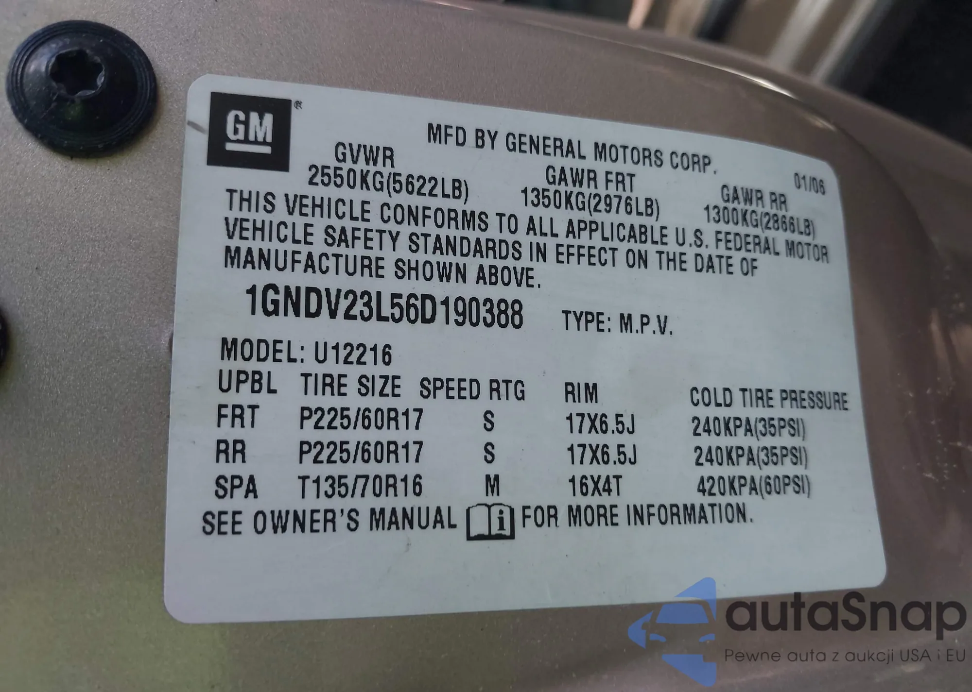 LOT: 42532517 VIN: 1GNDV23L56D190388