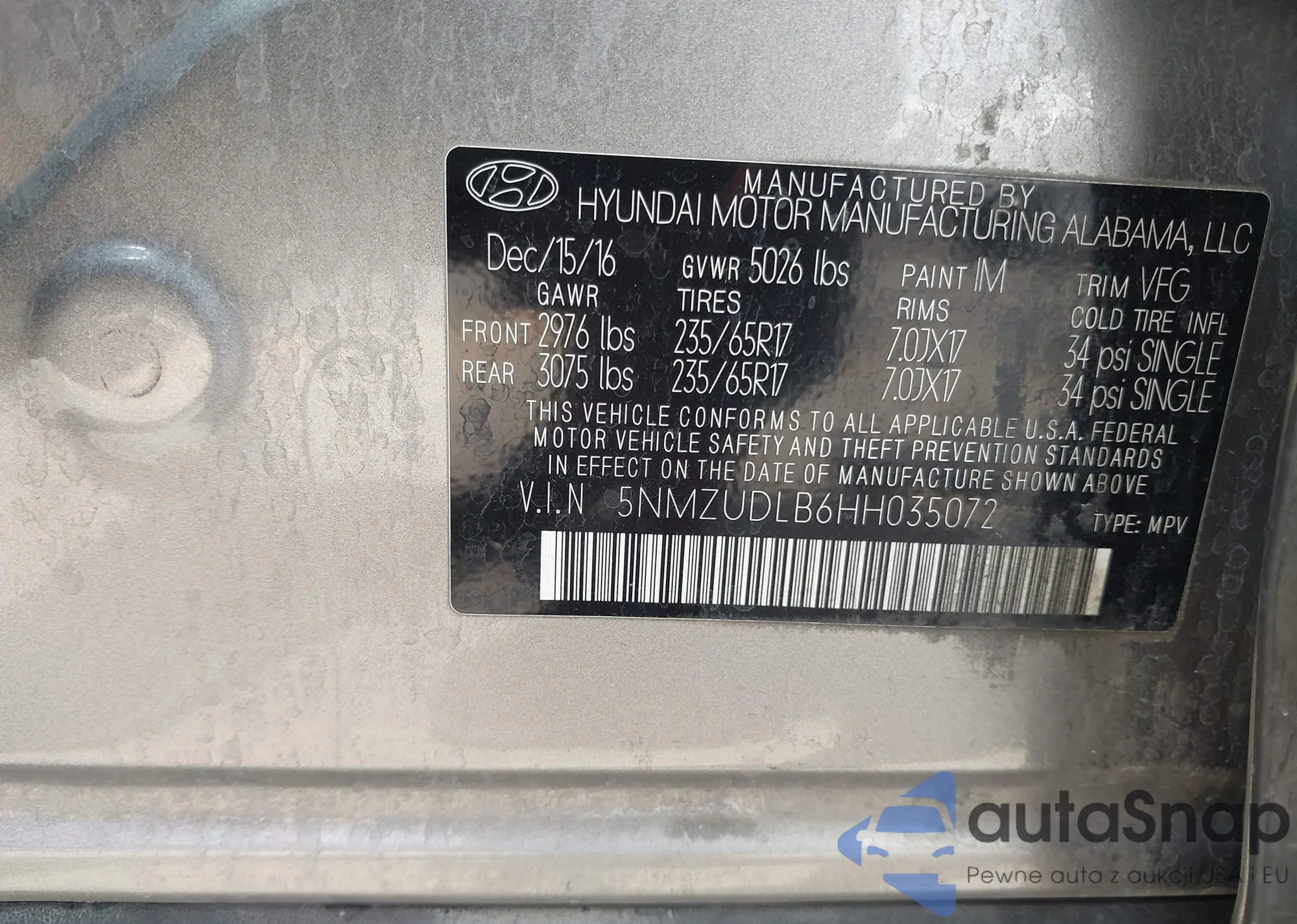 • VIN 5NMZUDLB6HH035072