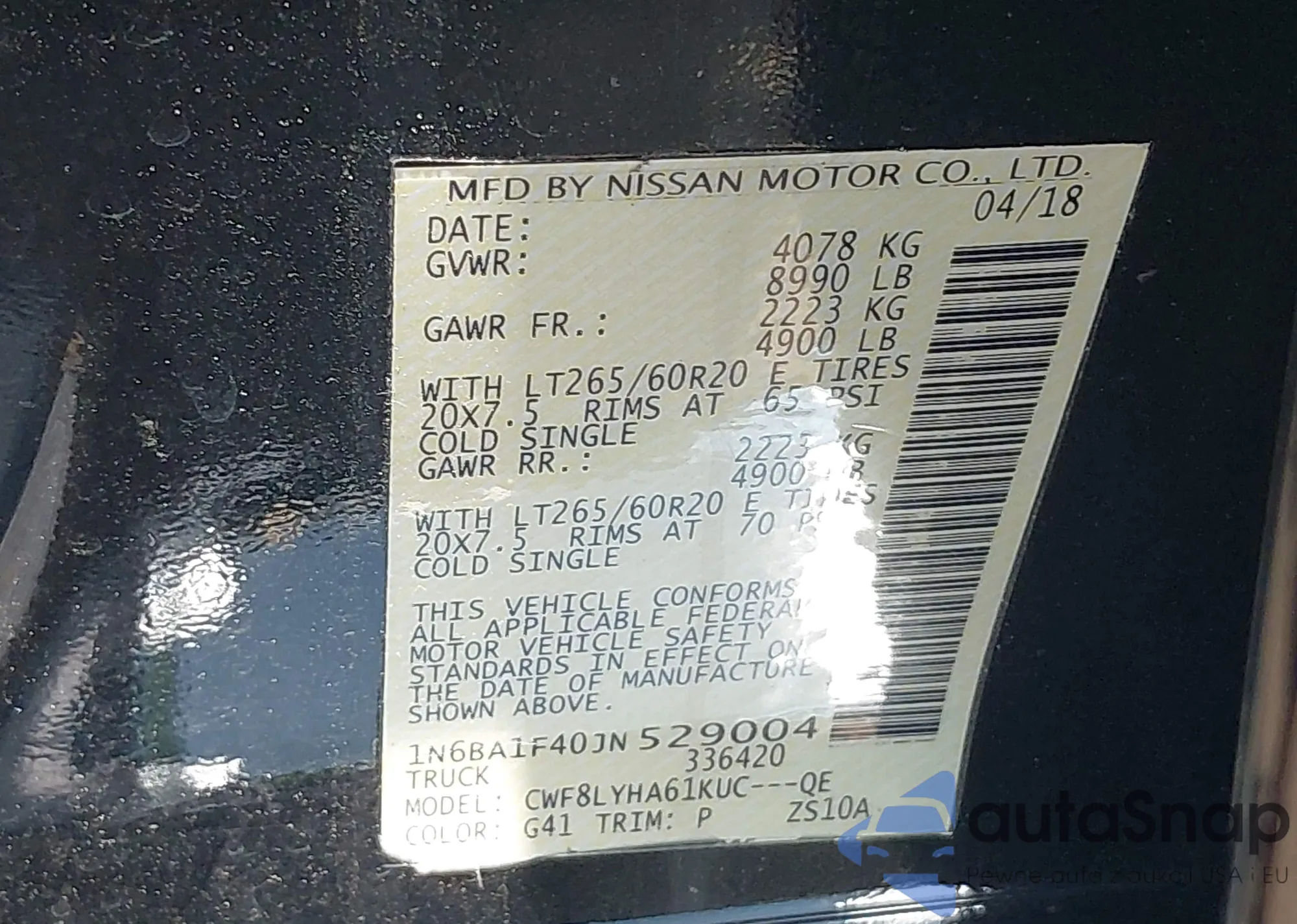 • VIN 1N6BA1F40JN529004