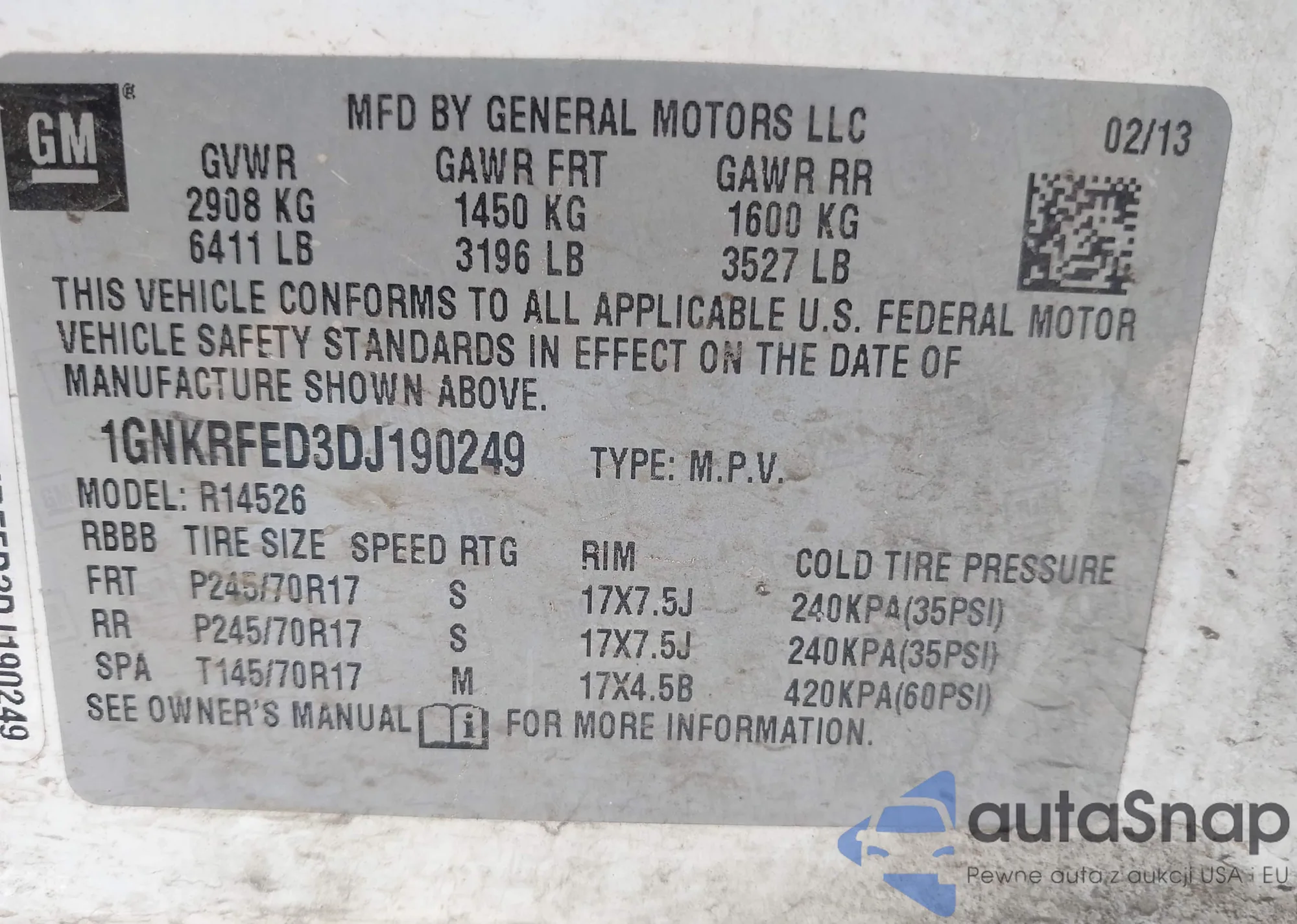 LOT: 42499948 VIN: 1GNKRFED3DJ190249