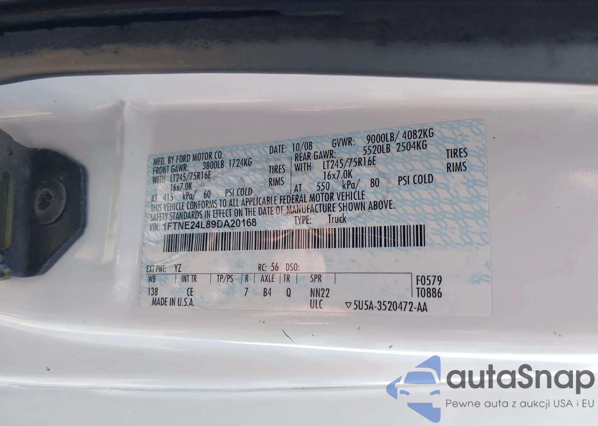 LOT: 42245830 VIN: 1FTNE24L89DA20168
