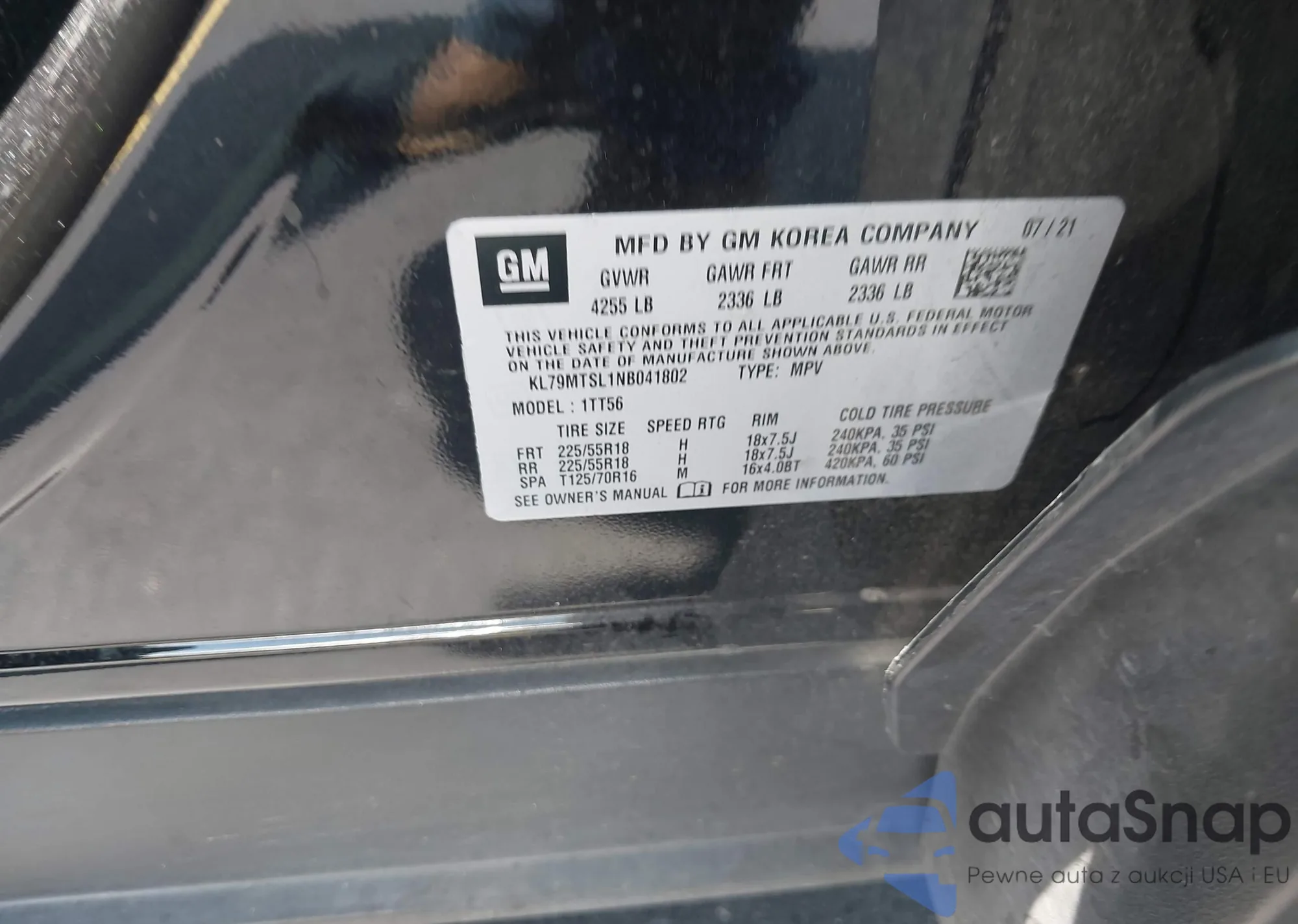 • VIN KL79MTSL1NB041802