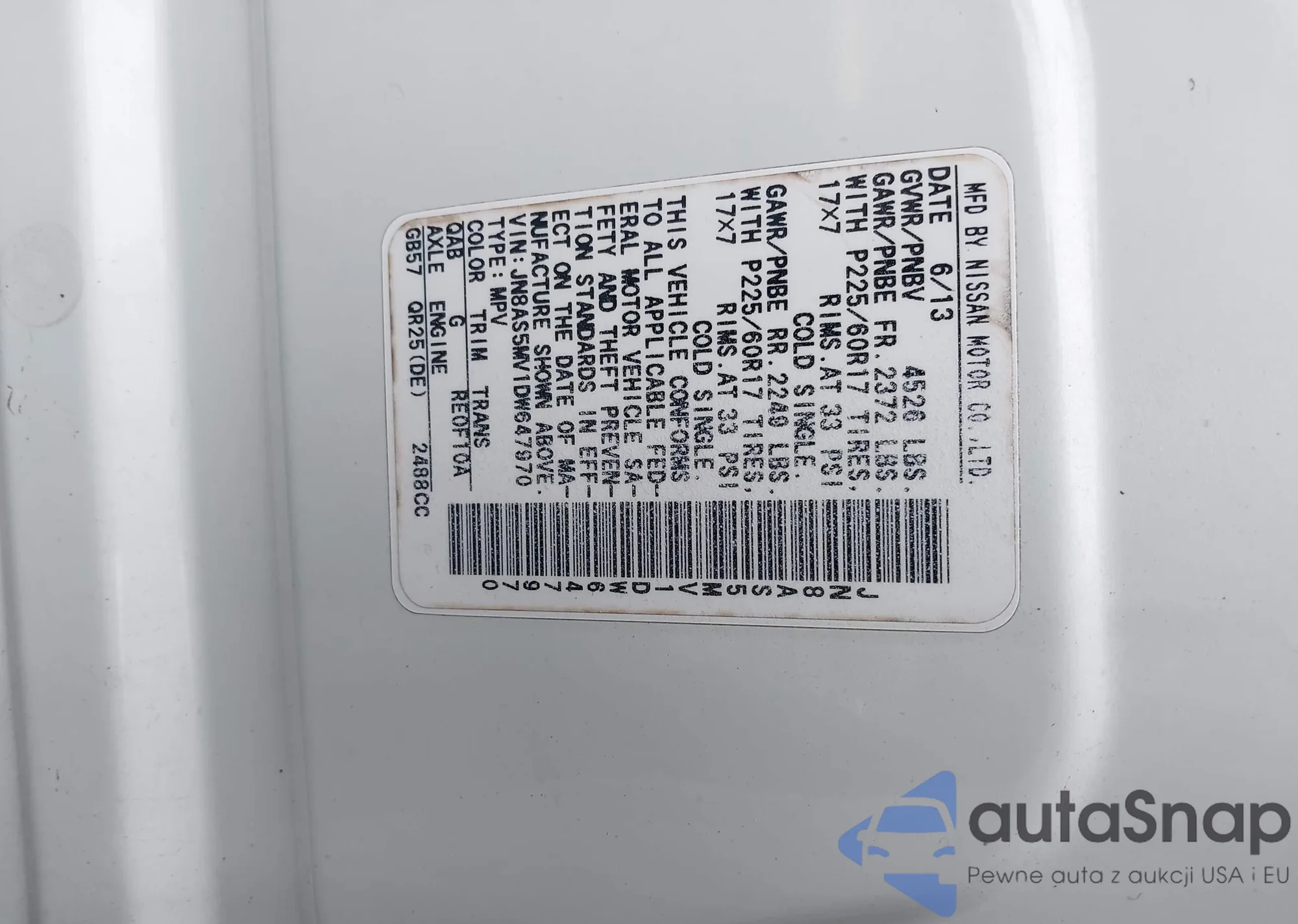 LOT: 42424409 VIN: JN8AS5MV1DW647970