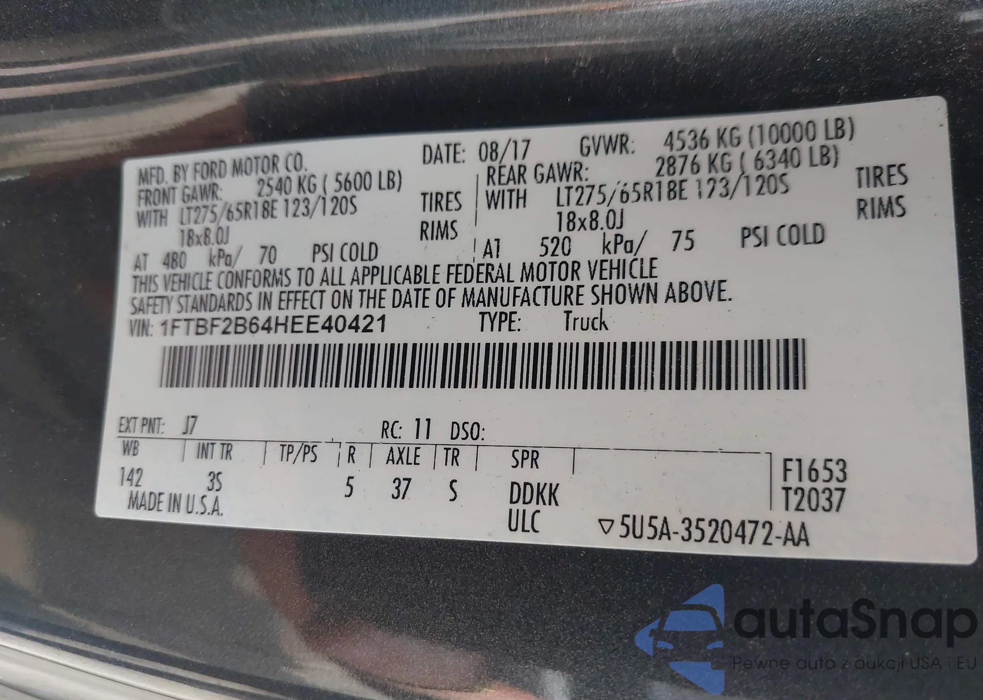LOT: 42367520 VIN: 1ZVBP8AM4E5282543