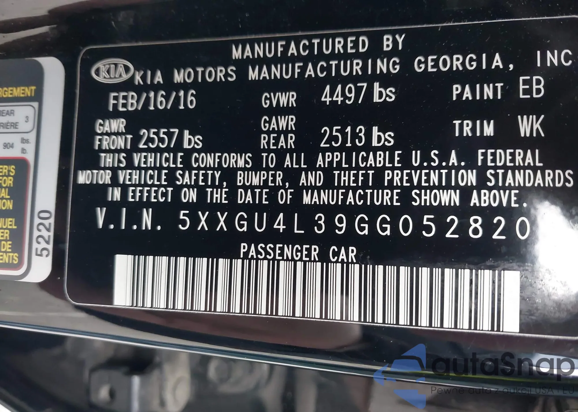 LOT: 42038747 VIN: KNDJ23AU5P7891941