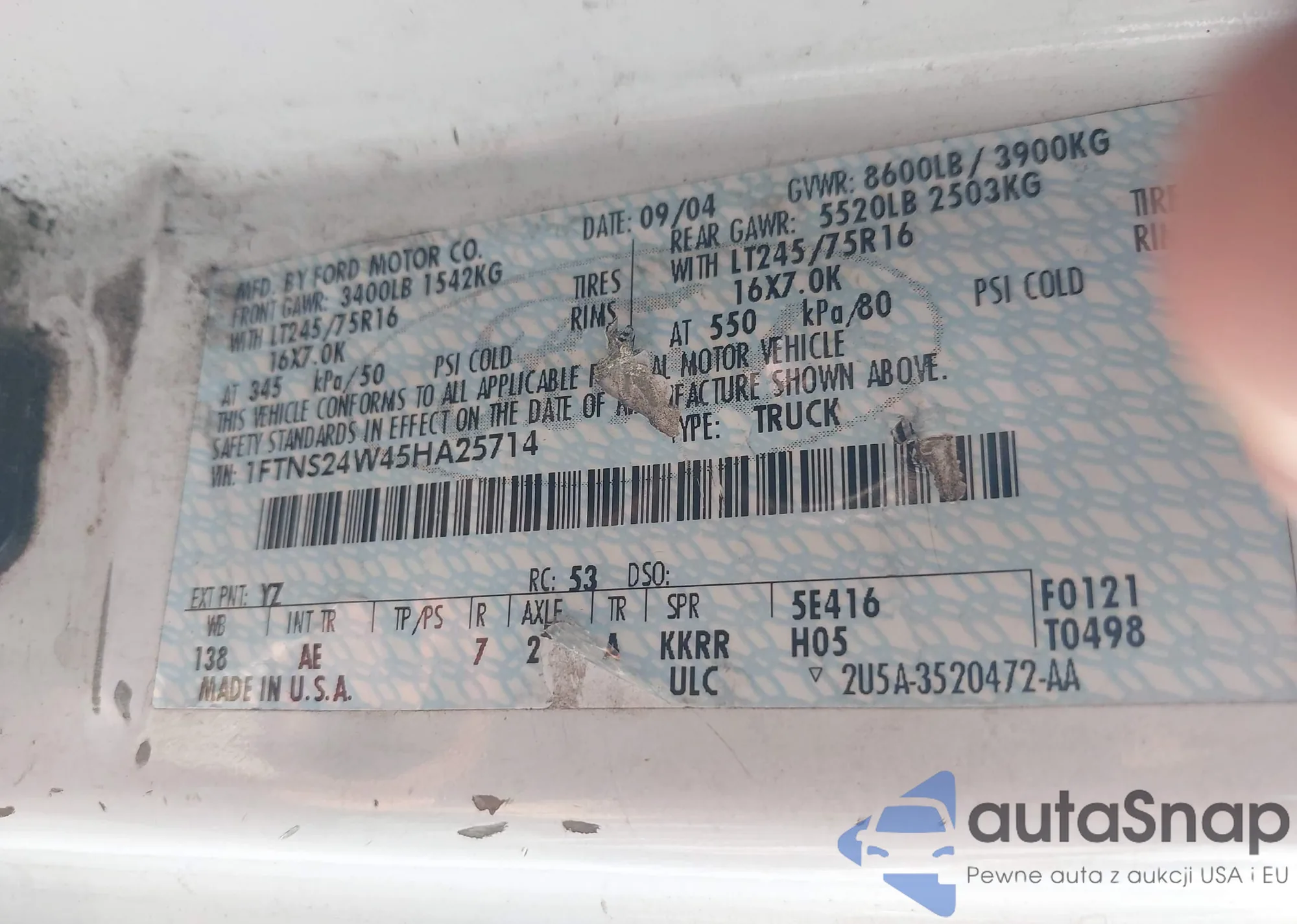 LOT: 42434486 VIN: 1FTNS24W45HA25714