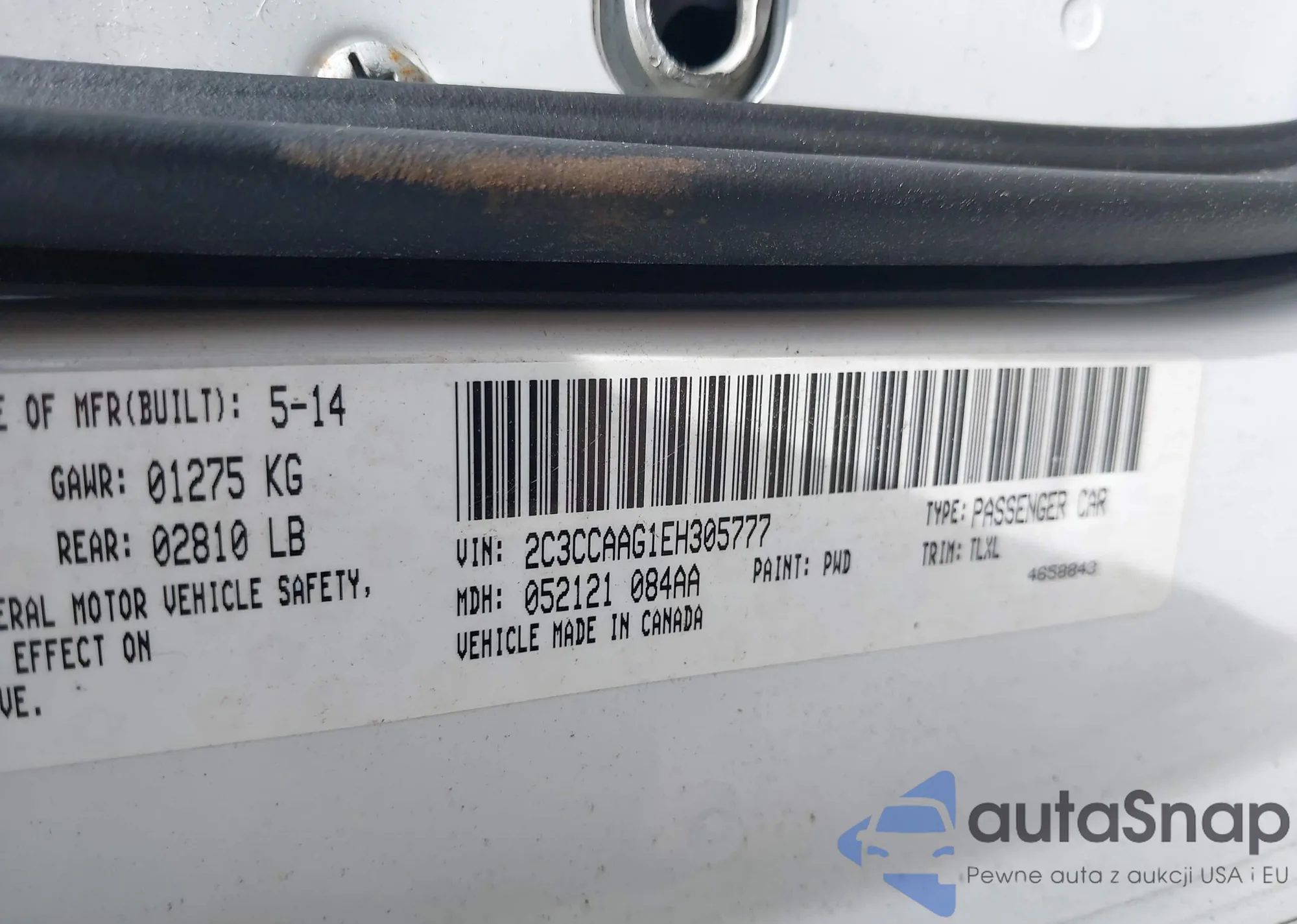 • VIN 2C3CCAAG1EH305777