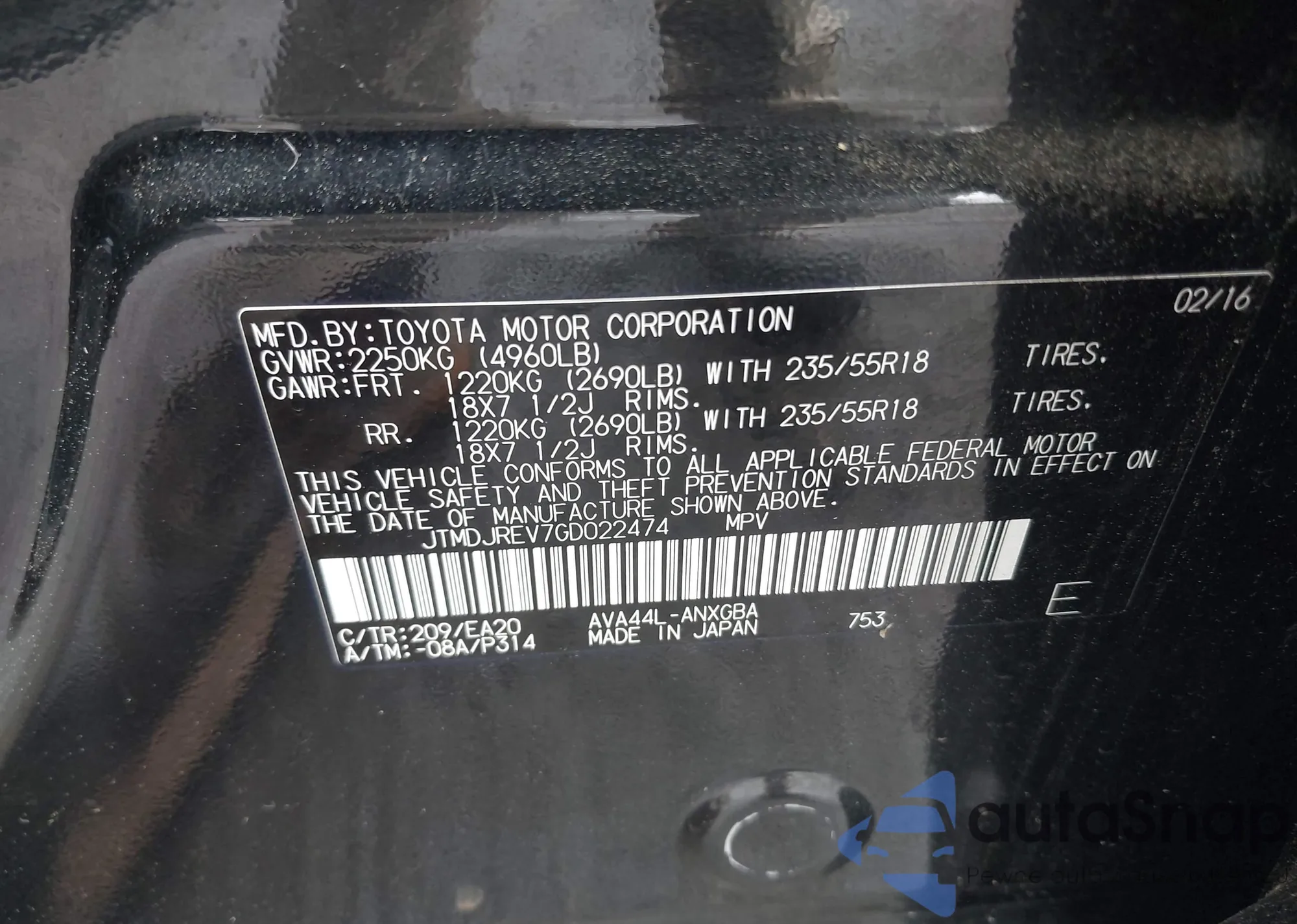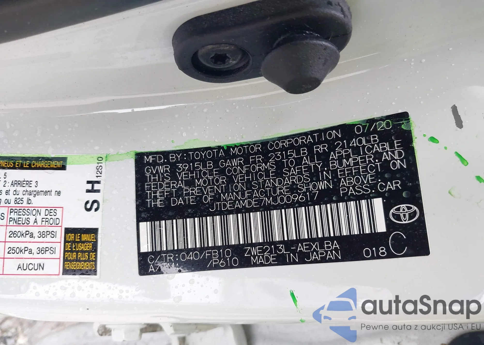 LOT: 42259344 VIN: JTDEAMDE7MJ009617