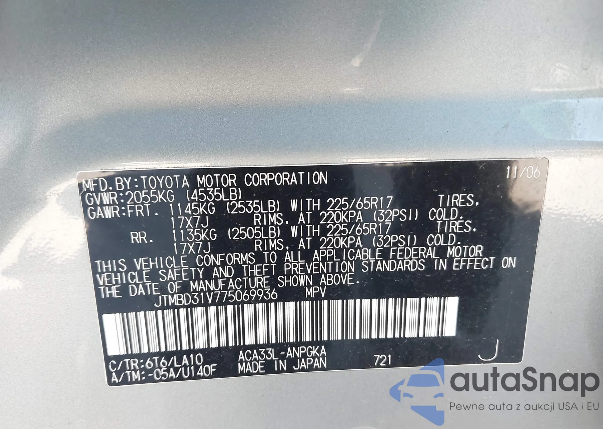LOT: 42291466 VIN: 4T3RWRFV0MU038715