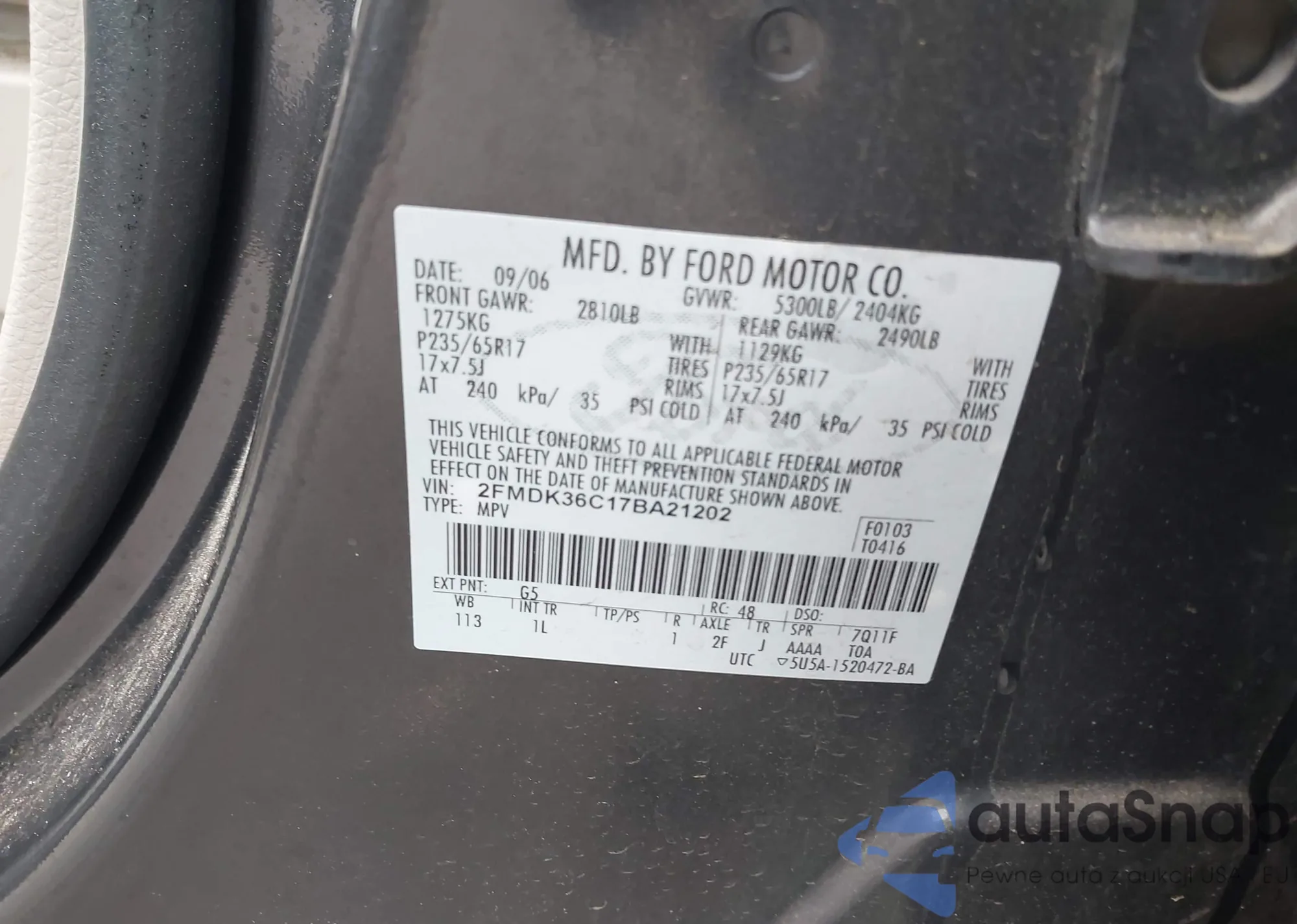 • VIN 2FMDK36C17BA21202