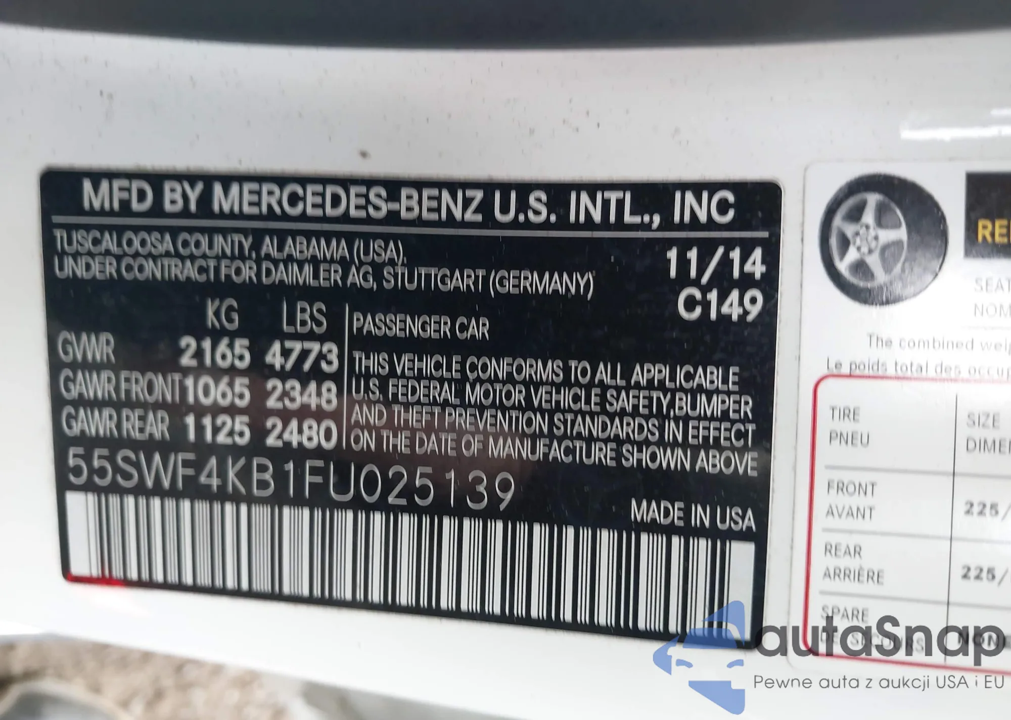 LOT: 42301949 VIN: 55SWF4KB1FU025139