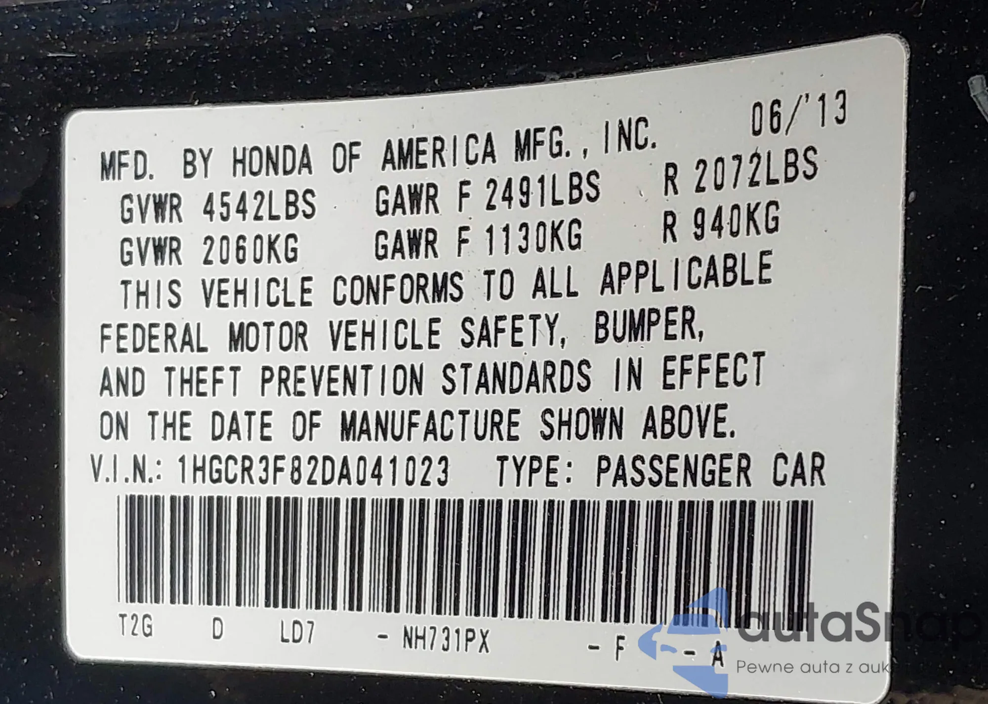 LOT: 42310754 VIN: 1HGCR3F98EA011230