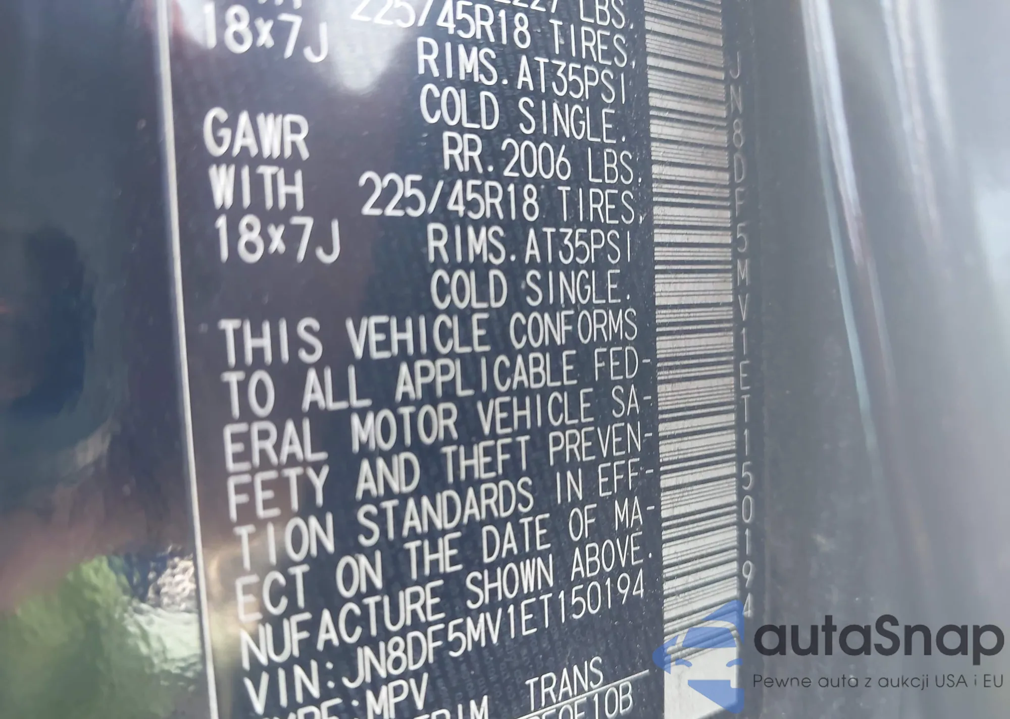 • VIN 1N4AB7AP6DN908440