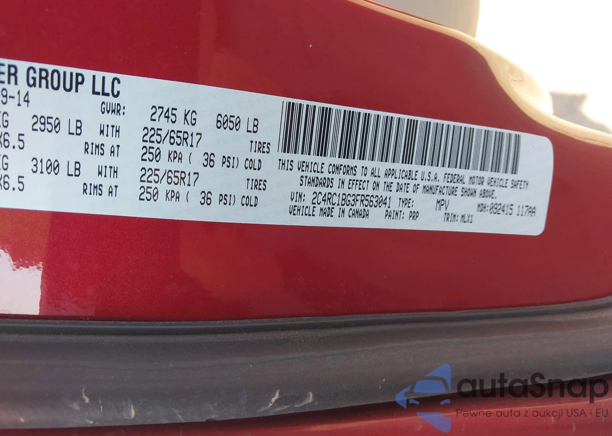 • VIN 2C4RC1BG3FR563041