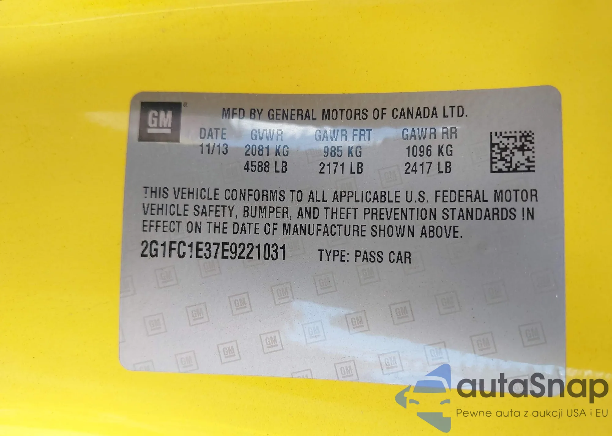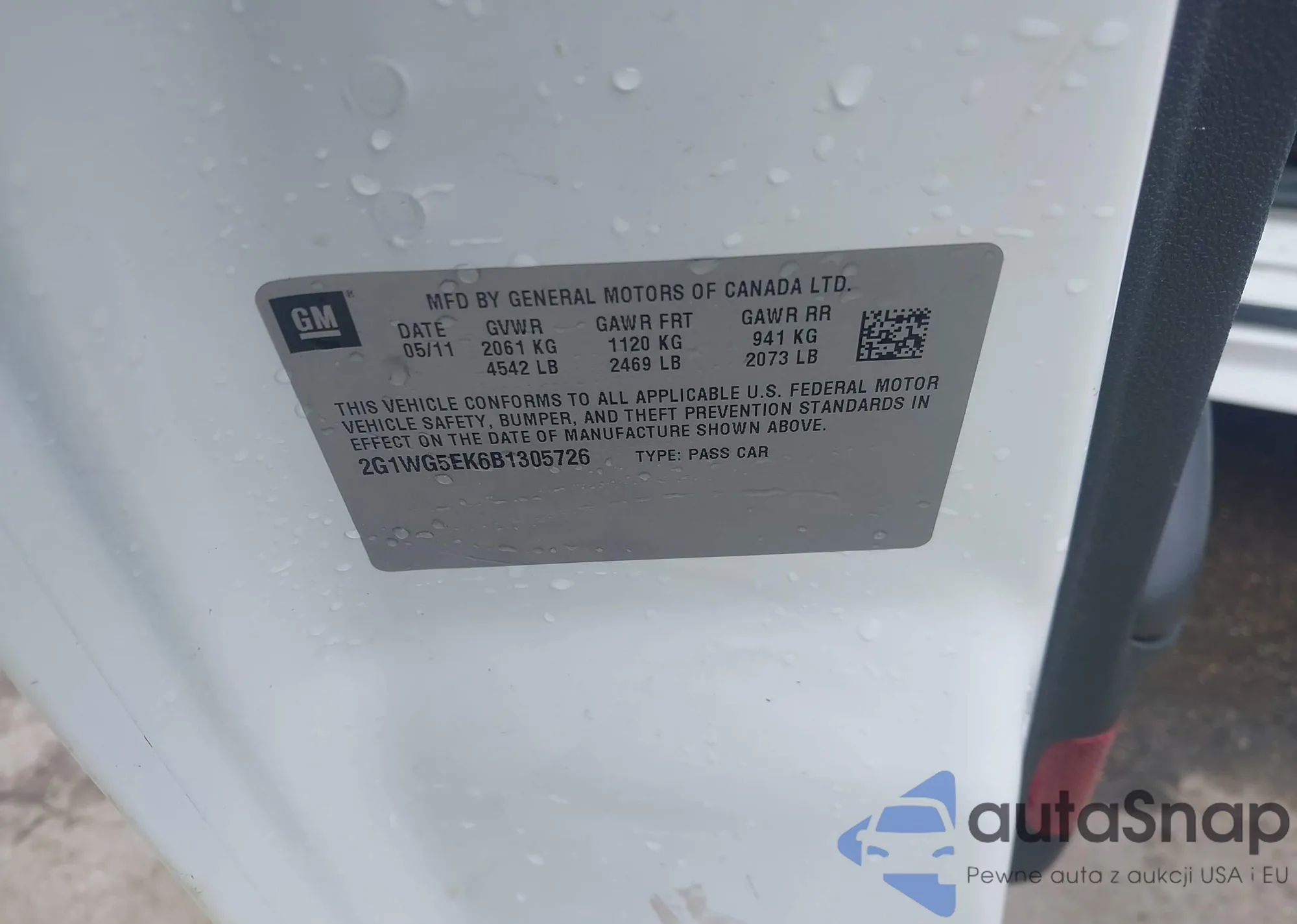 • VIN 2G1WG5EK6B1305726