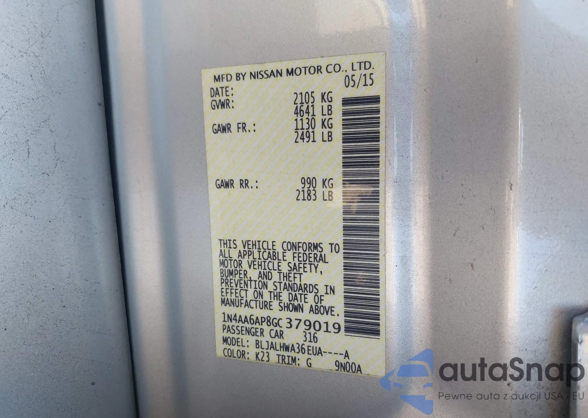 LOT: 42392392 VIN: 1N4AA6AP8GC379019
