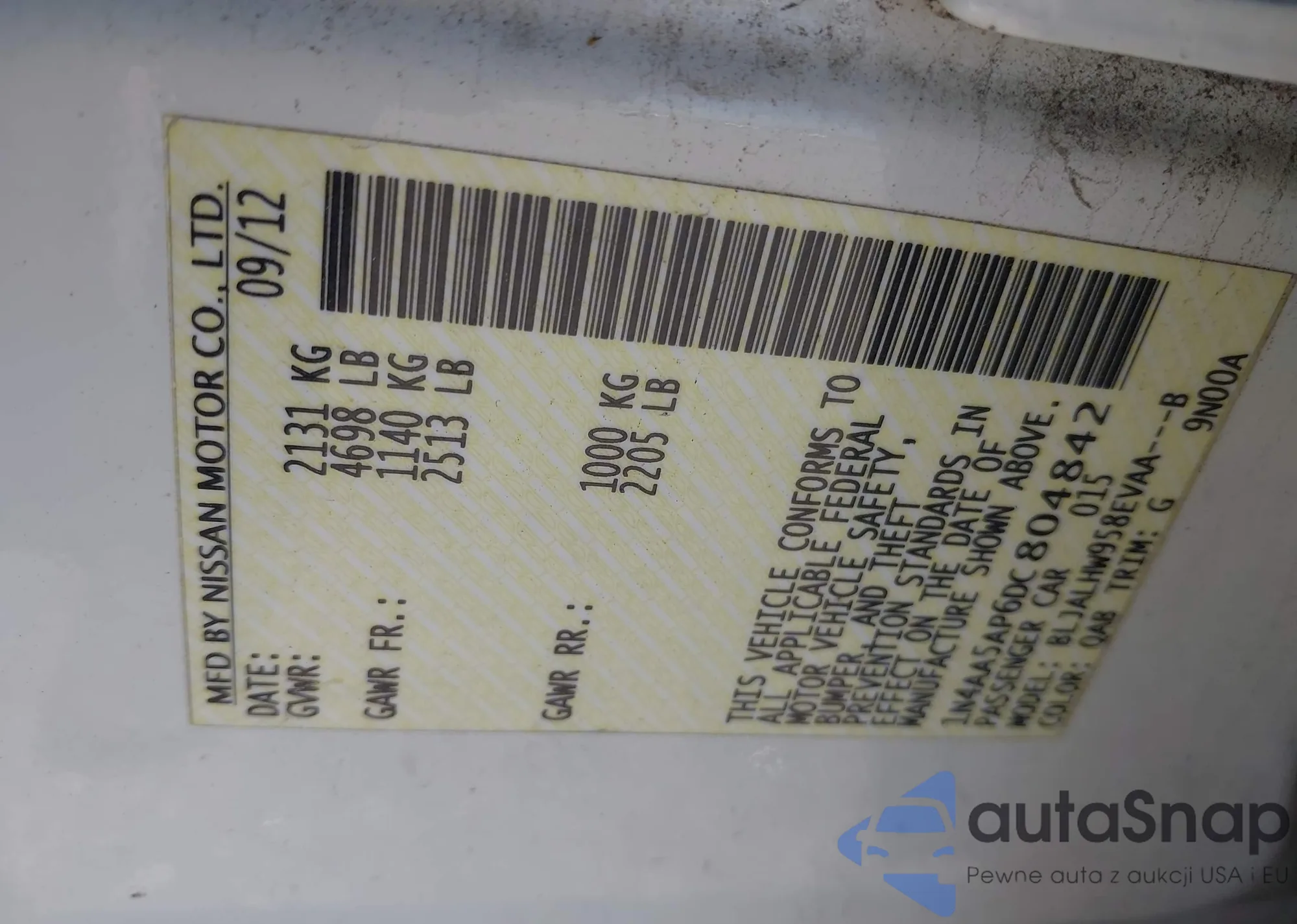LOT: 42412050 VIN: 1N4AA5AP6DC804842